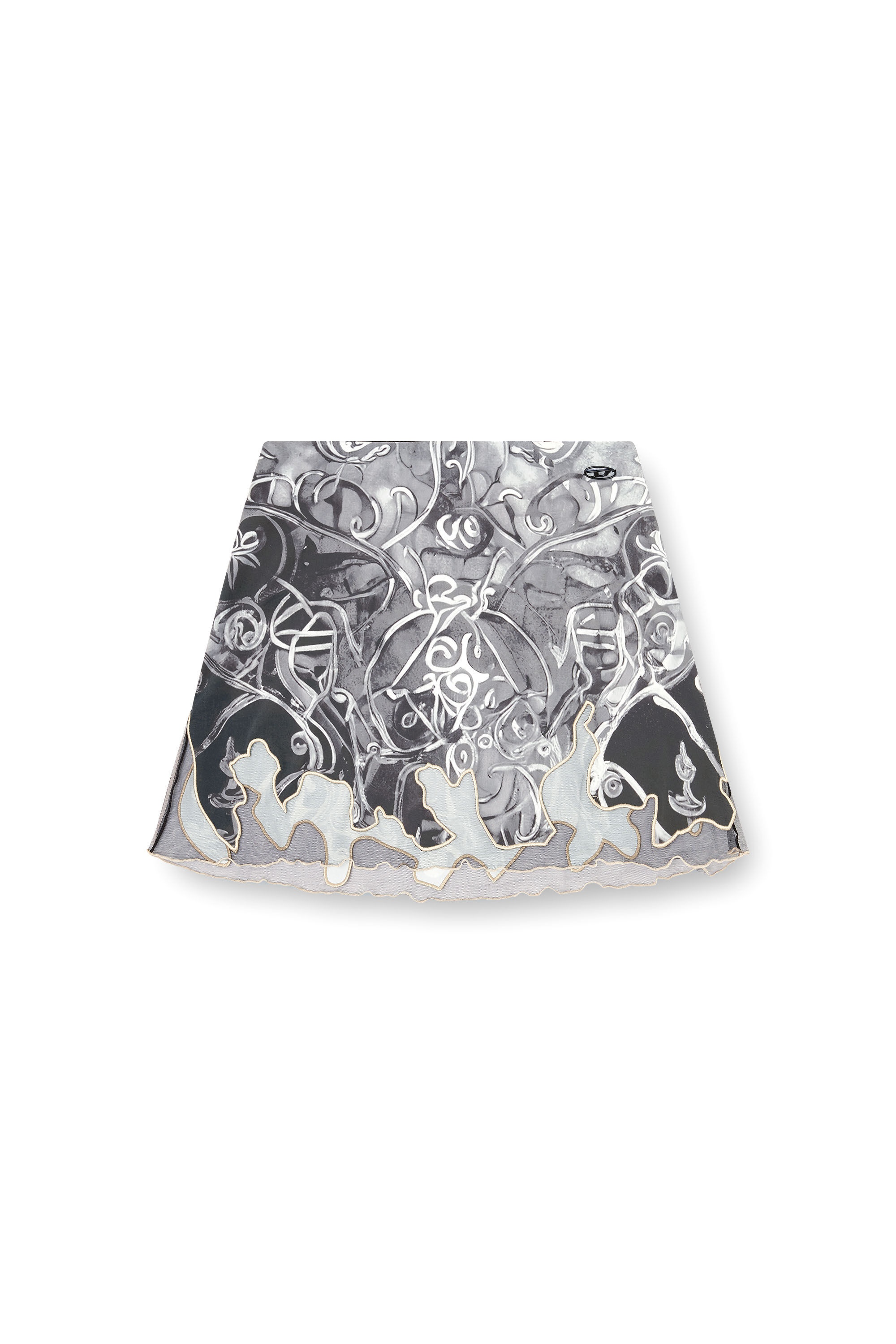 Product Description Cut from recycled nylon, this fluid mini skirt features a wallpaper-esque print that takes cues from Heraldic artwork. An asymmetrical tulle insert creates a doodle-effect hem edged with cord embroidery. A metal Oval D hallmarks the look. ID: A184170BJBT Size & Fit Model is wearing a size S and is 175 cm / 5'7'' Check the size chart to choose the correct size. Materials & Details Composition: 77%Polyamide-Nylon 23%Elastane-Spandex, Contrast 100%Polyamide-Nylon Slim fit Elasticated waist