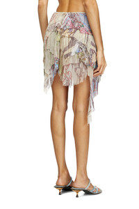 Product Description This crinkled TENCEL™ muslin skirt hangs in asymmetrical layers with raw-cut edges for a tattered look. The all-over print is an artistic collab, mixing medieval scenes with heraldic designs. Finished with a toggle stopper at the waist. ID: A183760WFCE Size & Fit Model is wearing an IT size 40 and is 175 cm / 5'7'' Check the size chart to choose the correct size. Materials & Details Composition: 100%Viscose-Rayon Regular fit Toggle-drawstring waistAsymmetrical hem