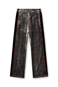 Product Description The streaky effect of these unisex tracksuit bottoms comes from the lustrous sheen of velvet — a blend of nylon and responsibly-sourced viscose — and a treated finish. Piped inserts enrich their regular silhouette, cinched at the ankles with toggle stoppers. ID: A184690AJFR Size & Fit Model is wearing a size L and is 182 cm / 5'10'' Check the size chart to choose the correct size. Materials & Details Composition: 75%Viscose-Rayon 25%Polyamide-Nylon Regular fit Elasticated drawstring waistToggle-drawstring cuffsSide pockets and back pocketsUnisex