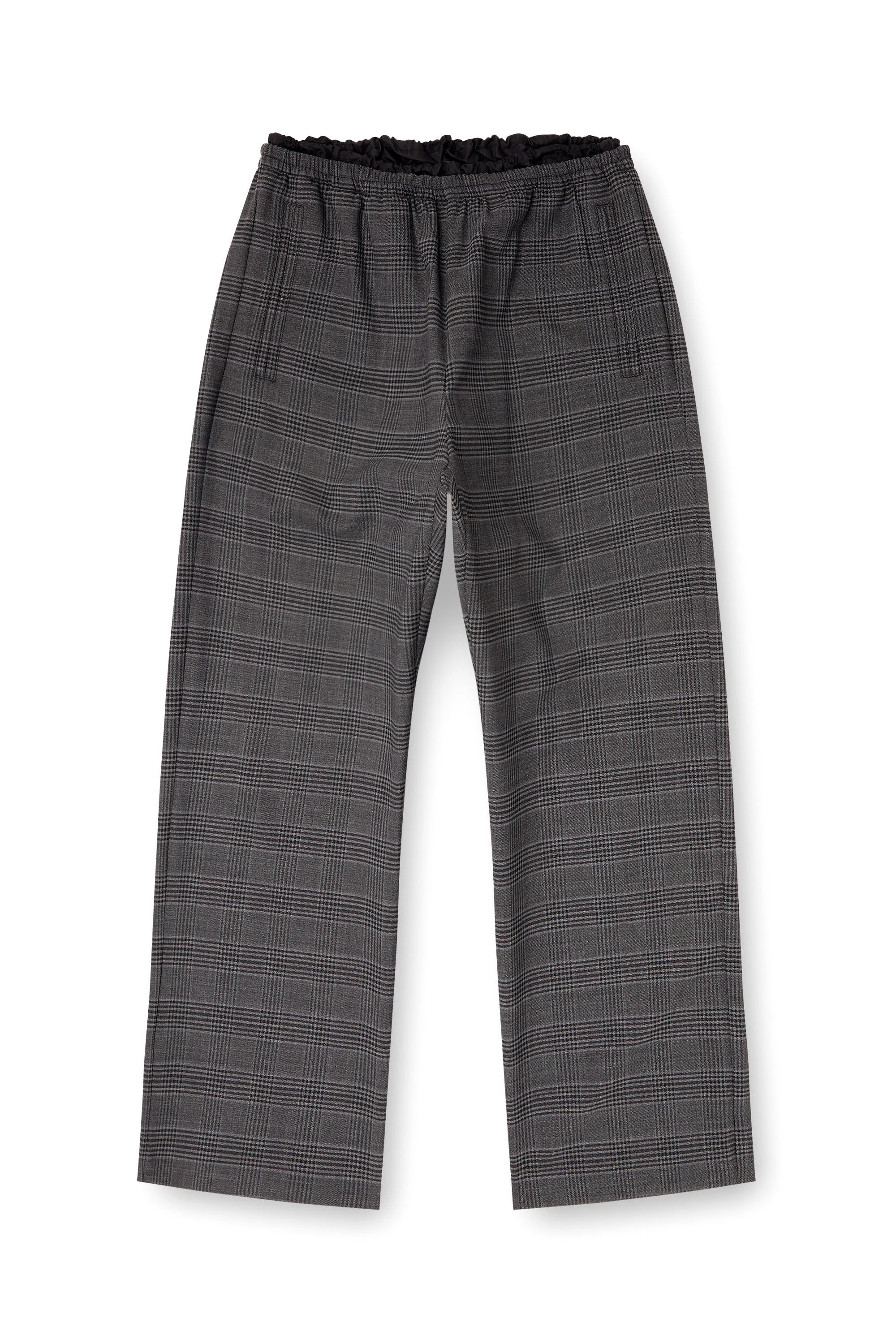 Product Description Wool pants with regular fit, wide and slightly stretchy, in Prince of Wales fabric. The waist features a practical drawstring and a contrasting elastic band. They have elegant slit pockets, and the Oval D logo in metal is positioned on the back. ID: A184850DEBS Size & Fit Model is wearing a size L and is 182 cm / 5'10'' Check the size chart to choose the correct size. Materials & Details Composition: 54%Polyester 44%Virgin Wool 2%Elastane-Spandex, Contrast 100%Polyamide-Nylon Regular fit Drawstring waist Front and back welt pockets Metal logo