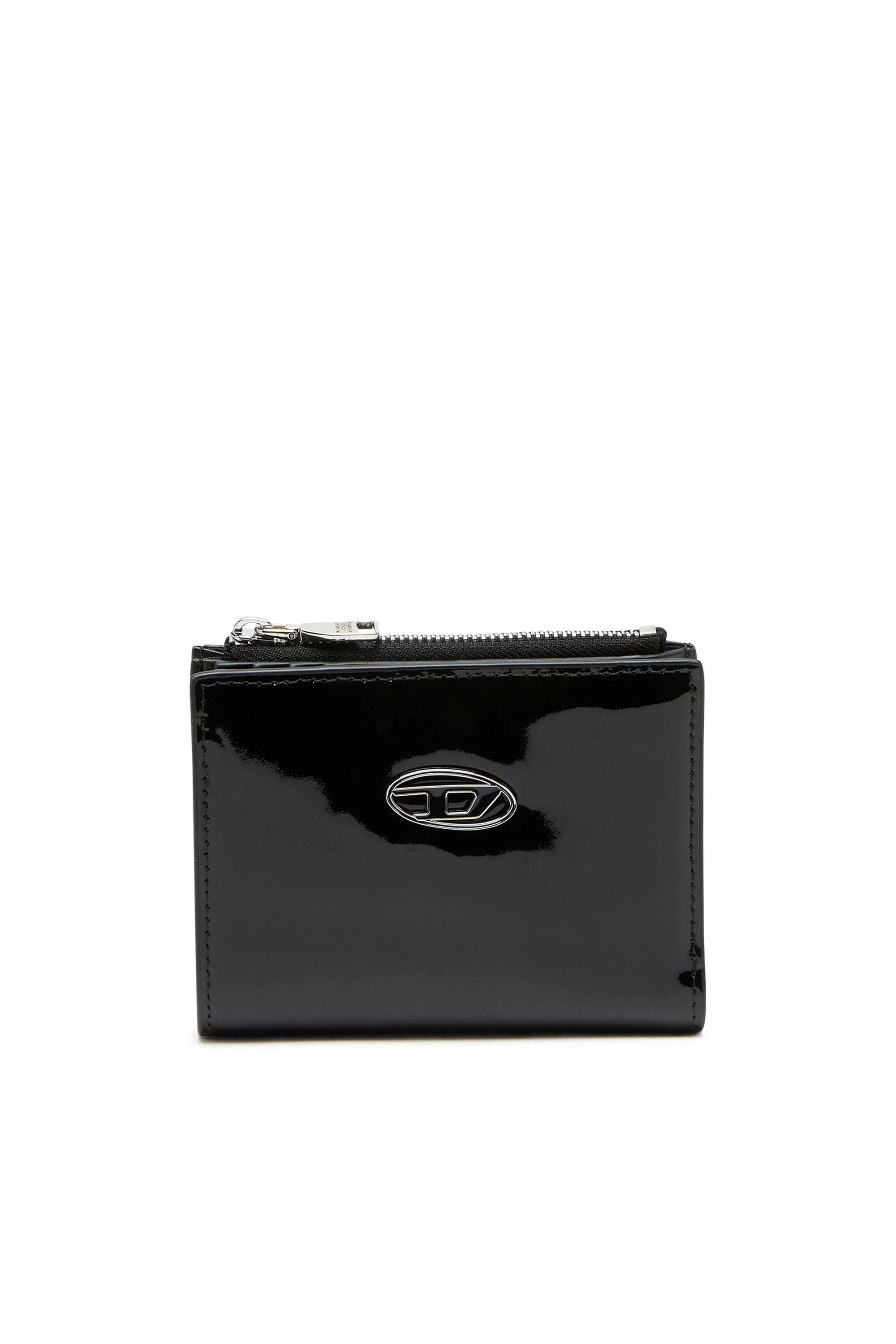 Product Description A snap-fastening bi-fold design, this women’s leather wallet is compact yet well equipped to store your cards, notes and coins. It’s adorned with discreet enamelled Oval D hardware and features a glossy patent finish. ID: X10121PR271 Materials & Details Composition: 100%Cow Leather Bi-fold style with snap closure 6 card slots 2 flat pockets Note compartment Zipped coin pocket