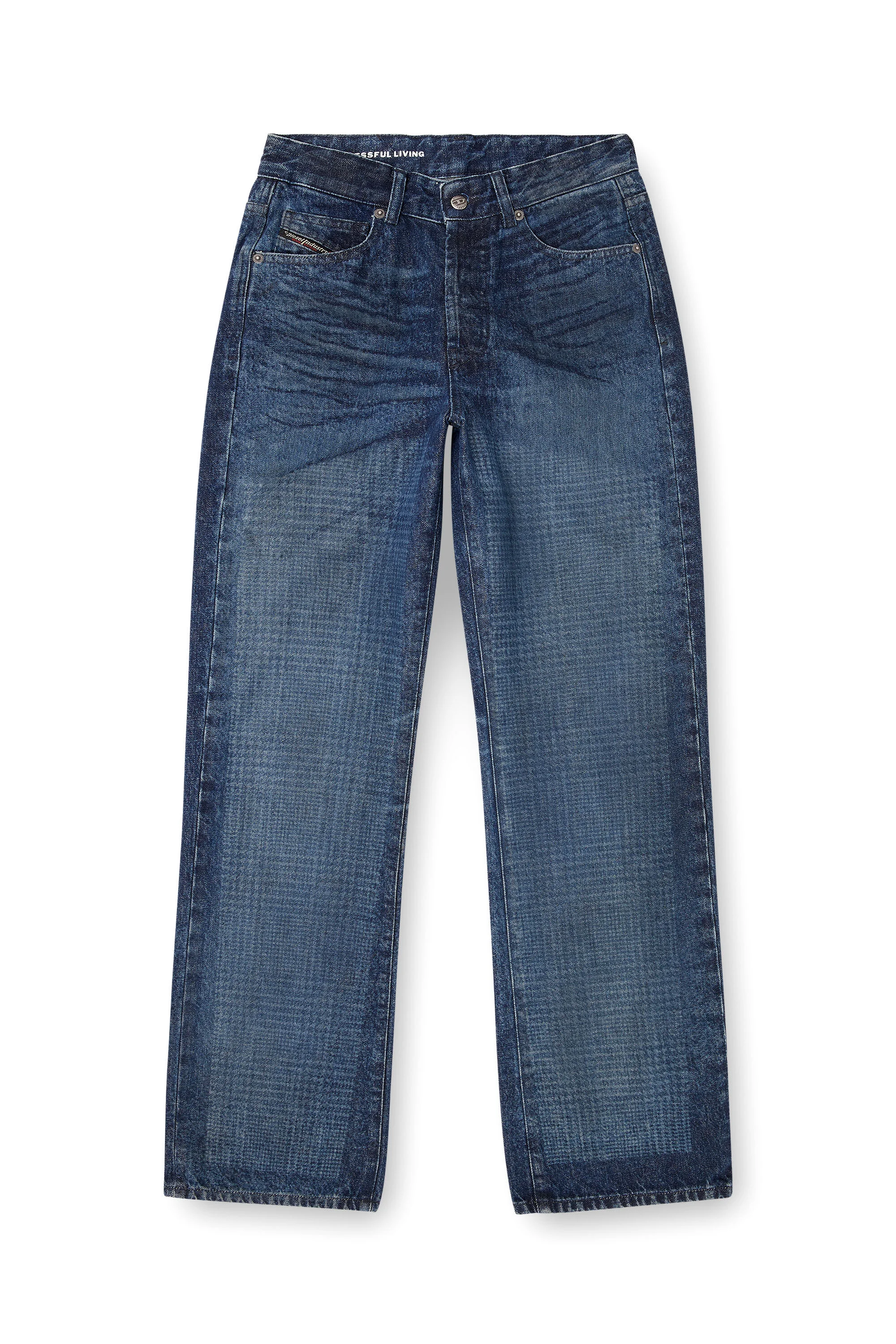 Product Description Regular fit with a straight leg. The waistband sits high on the waist and is designed to create a V-shaped front, tracing a feminine yet comfortable silhouette that embodies classic elegance. Fastened with a button fly. A nod to classic tailoring, reworked with sharp contemporary edge, this fix denim fuses a traditional Prince of Wales check with a dark blue stonewashed aesthetic. A precise laser process creates the check pattern on the fabric, layered with whisker-effect artwork. A final tonal spray boosts contrast and adds depth to the graphic lived-in look. ID: A21692007CV Size & Fit Model is wearing a size 26 and is 175 cm / 5'7'' Check the size chart to choose the correct size. Materials & Details Composition: 80%Cotton 20%True Hemp Fit: Regular Waist: High Wash: Treated Fabric: Non-Stretch Closure: Button fly Crotch: Regular