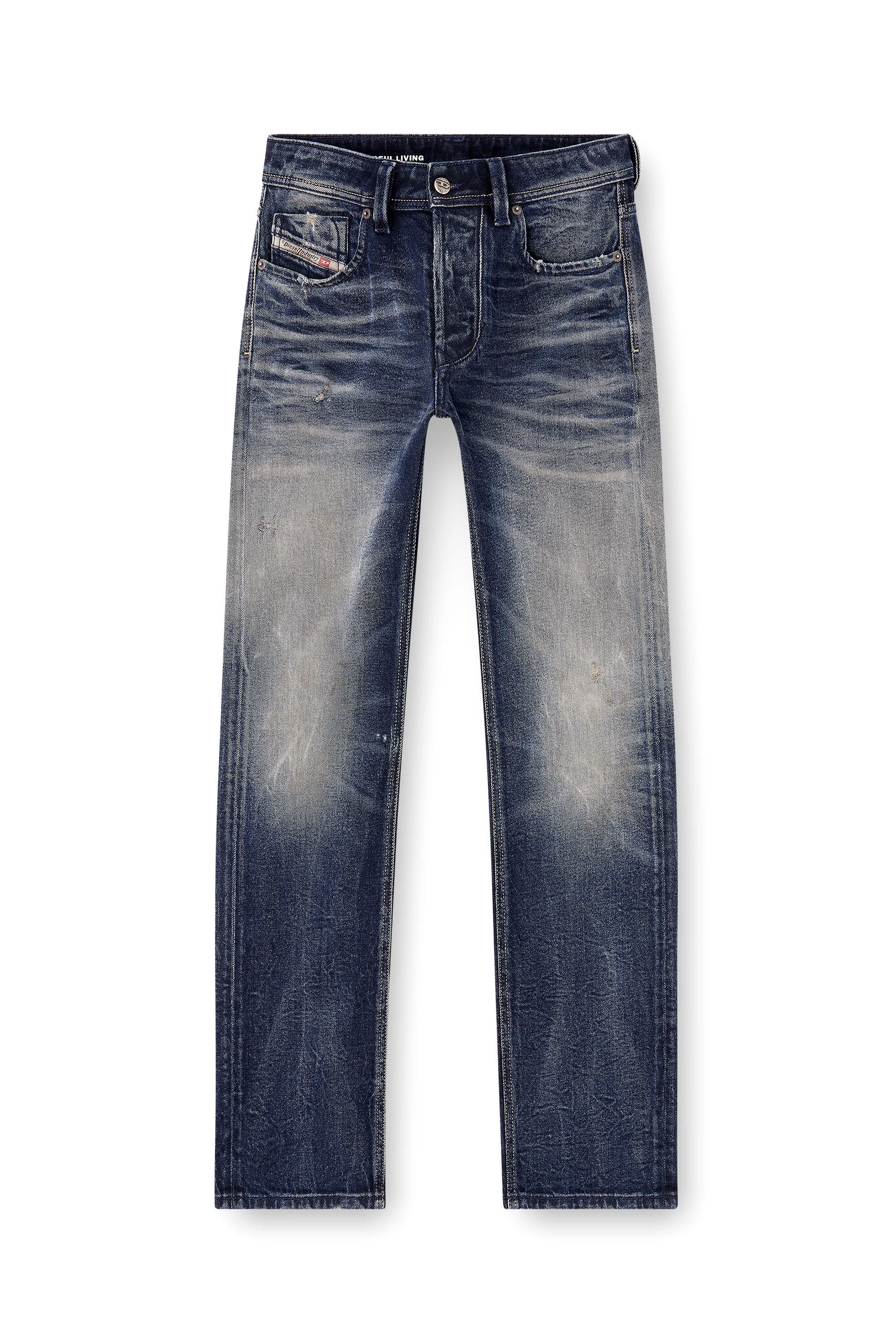 Product Description Straight style with a relaxed waist and ample thigh room. With its studied lived-in aesthetic and hand-finished details, this dark blue wash offers an authentic look that's part of Diesel's DNA. Made from comfort denim in partially recycled cotton, each pair is hand-shaped on a mannequin and resin-treated to create subtle 3D creases that won't wash out. Dirt effects enhance the worn look, while a leather back patch adds a signature touch. ID: 00C06Q09N57 Size & Fit Model is wearing a size 32 and is 182 cm / 5'10'' Check the size chart to choose the correct size. Materials & Details Composition: 99%Cotton 1%Elastane-Spandex Fit: Regular Waist: Low Wash: Treated Fabric: Comfort Closure: Button fly