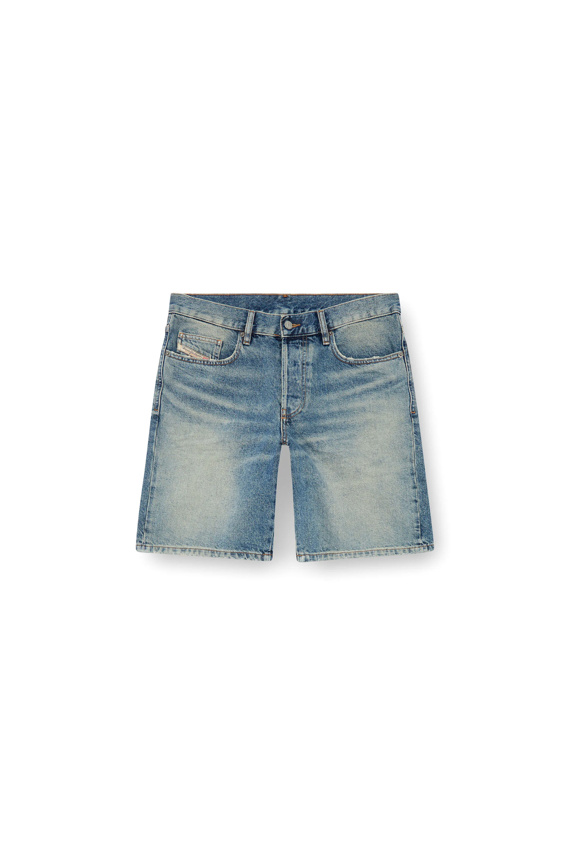 Product Description Men's five-pocket shorts with a regular waist and straight leg, cut to knee length. The medium blue wash is crafted from fix denim and treated for a lived-in look that's part of Diesel's DNA selection. ID: A064300GRDS Size & Fit Model is wearing a size 32 and is 182 cm / 5'10'' Check the size chart to choose the correct size. Materials & Details Composition: 100%Cotton Regular fit 5 pocket style Button and zip fly