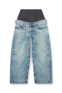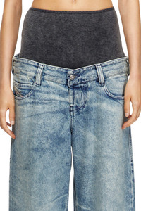 Product Description Relaxed fit with a high body-hugging basque, secured to a classic 5-pocket waistband that creates the illusion of a bumster jean. The low crotch and long wide leg enhance the extreme silhouette. Button fly. Part of the Runway Show collection, this medium blue wash features signature whiskers along the waistband. The lightly treated finish reflects Diesel's iconic aesthetic. Crafted from fix denim in cotton and hemp. ID: A2164409N97 Size & Fit Model is wearing a size 26 and is 175 cm / 5'7'' Check the size chart to choose the correct size. Materials & Details Composition: 80%Cotton 20%True Hemp, Contrast 100%Cotton Fit: Relaxed Waist: High Wash: Medium treated Fabric: Non-Stretch Closure: Button fly Crotch: Low