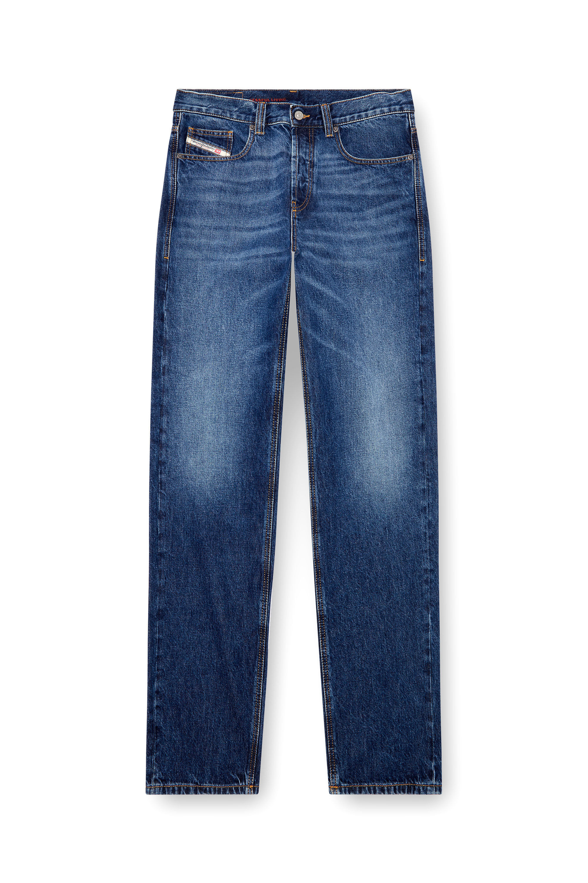 Product Description Loose style with a regular waist and straight leg. The silhouette nods to street and hip-hop culture, and features a distinctive label and button fly. This clean dark blue wash is crafted from fix denim with organic cotton, and is part of the Diesel Denim Library. ID: A0356409I27 Size & Fit Model is tall 185 cm / 6’ 1”, the waist measures 79 cm / 31" Check the size chart to choose the correct size. Materials & Details Composition: 100%Cotton By buying cotton products from Diesel, you’re supporting responsible cotton production through "Better Cotton”. Fit: Loose Waist: Mid Leg: Straight Wash: Clean Fabric: Non-Stretch Color: Medium blue Closure: Button fly