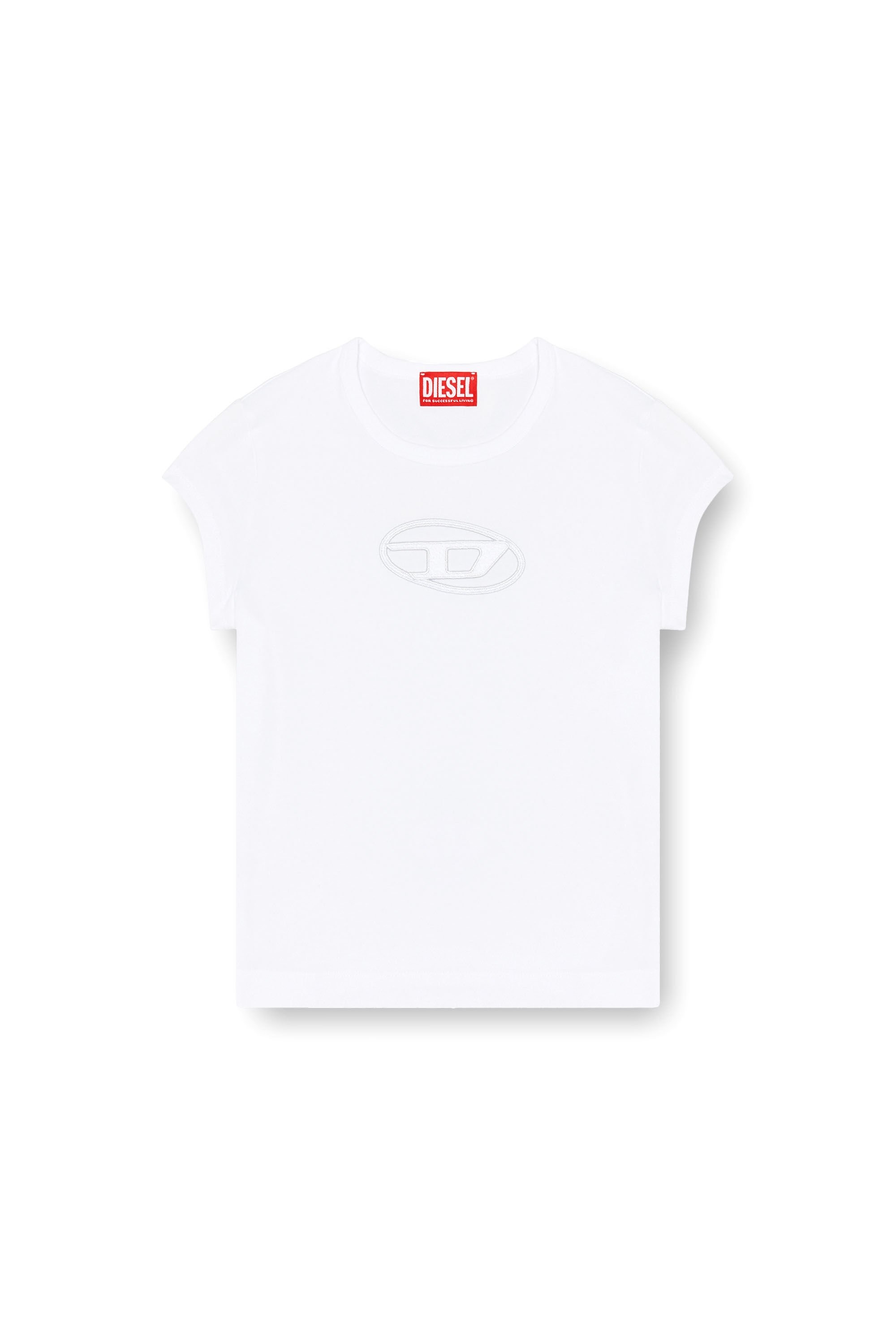Product Description This women's top features a peekaboo 'oval D' logo on the chest, made using a laser-cutting technique and embroidery. It's crafted from organic cotton blended with stretch for a comfortable slim fit. The red variant of this item is a limited edition. ID: A062680AFAA Size & Fit Model is wearing a size S and is 175 cm / 5'7'' Fit runs large. We recommend sizing down Materials & Details Composition: 93%Cotton 7%Elastane-Spandex, Rib 97%Cotton 3%Elastane-Spandex, Embroidery Yarn 100%Polyester Red color: limited edition Slim fit