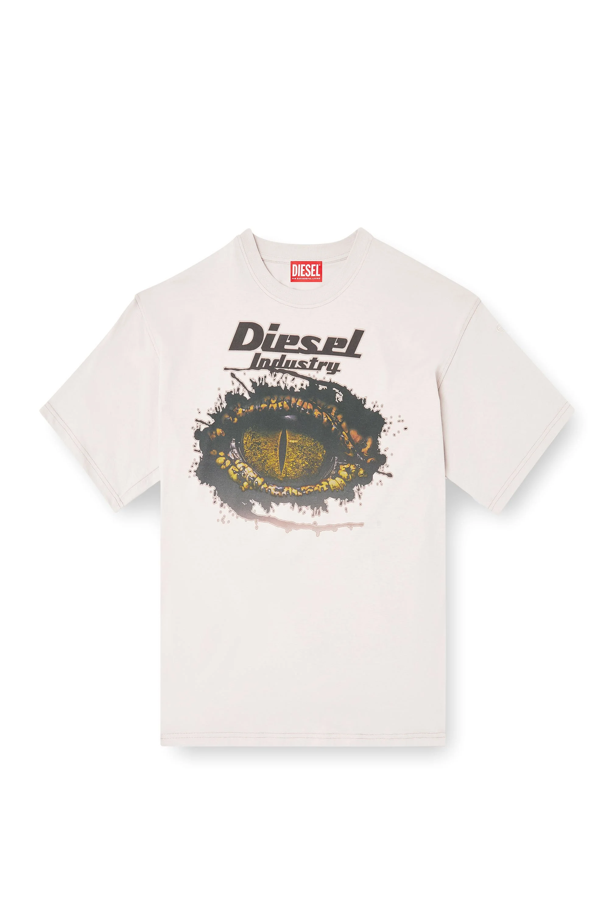 Product Description Cotton T-shirt with short sleeves and a relaxed fit crew neck. Features a digital print depicting a crocodile eye on the front and has an Oval D logo embroidery on the left sleeve. ID: A196400PLAT Size & Fit Model is wearing a size L and is 182 cm / 5'10'' Check the size chart to choose the correct size. Materials & Details Composition: 100%Cotton Relaxed fit Crew neck Oval D embroidery on the left sleeve Digital front print