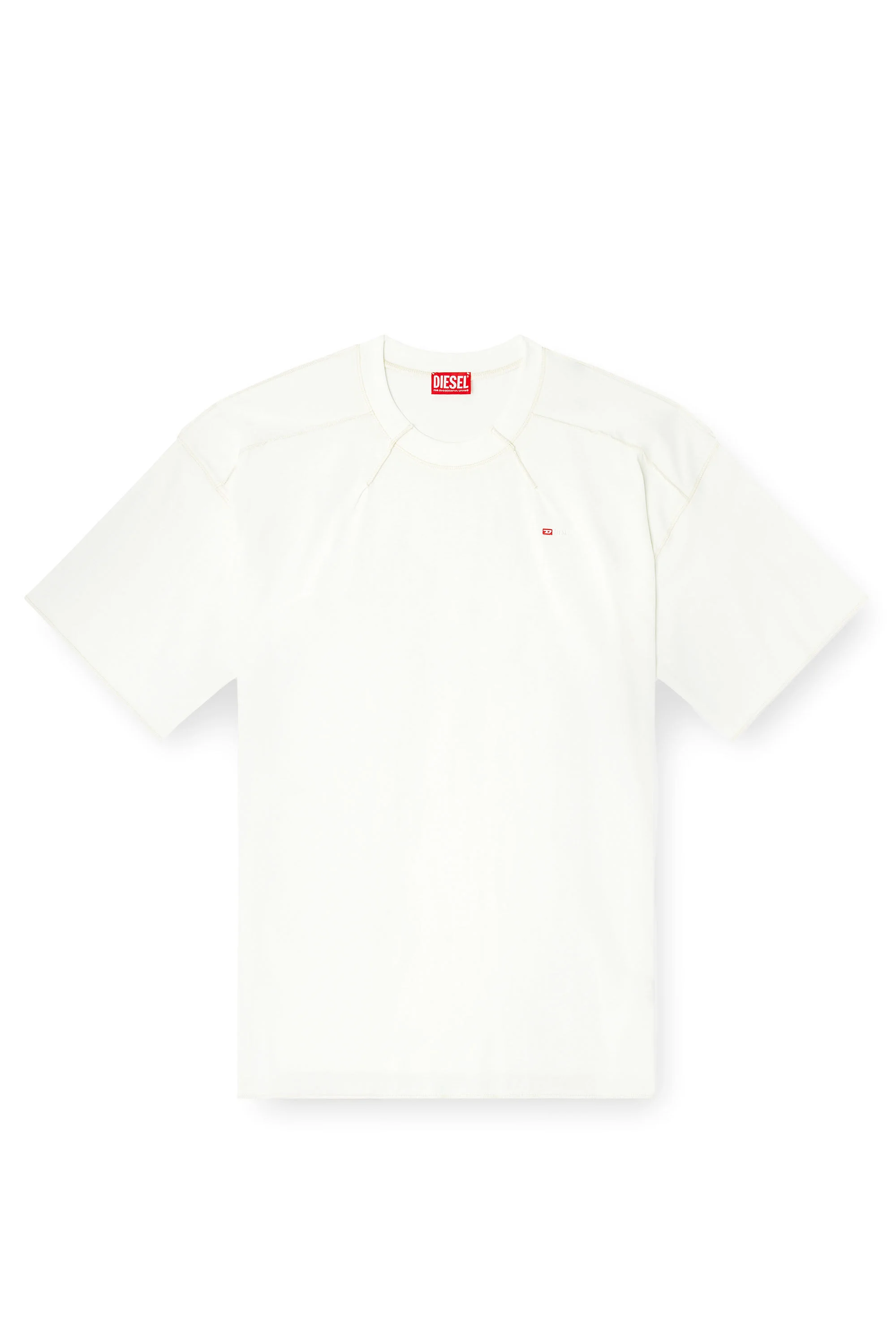 Product Description Cotton T-shirt, slightly stretchy and with a relaxed fit. It features short sleeves and a classic round neck. The external stitching adds a touch of sophistication while the embroidered contrasting logo is located on the chest. ID: A194630NIAX Size & Fit Model is wearing a size L and is 182 cm / 5'10'' Check the size chart to choose the correct size. Materials & Details Composition: 100%Cotton, Rib 95%Cotton 5%Elastane-Spandex Relaxed fit Crew neck Embroidered logo