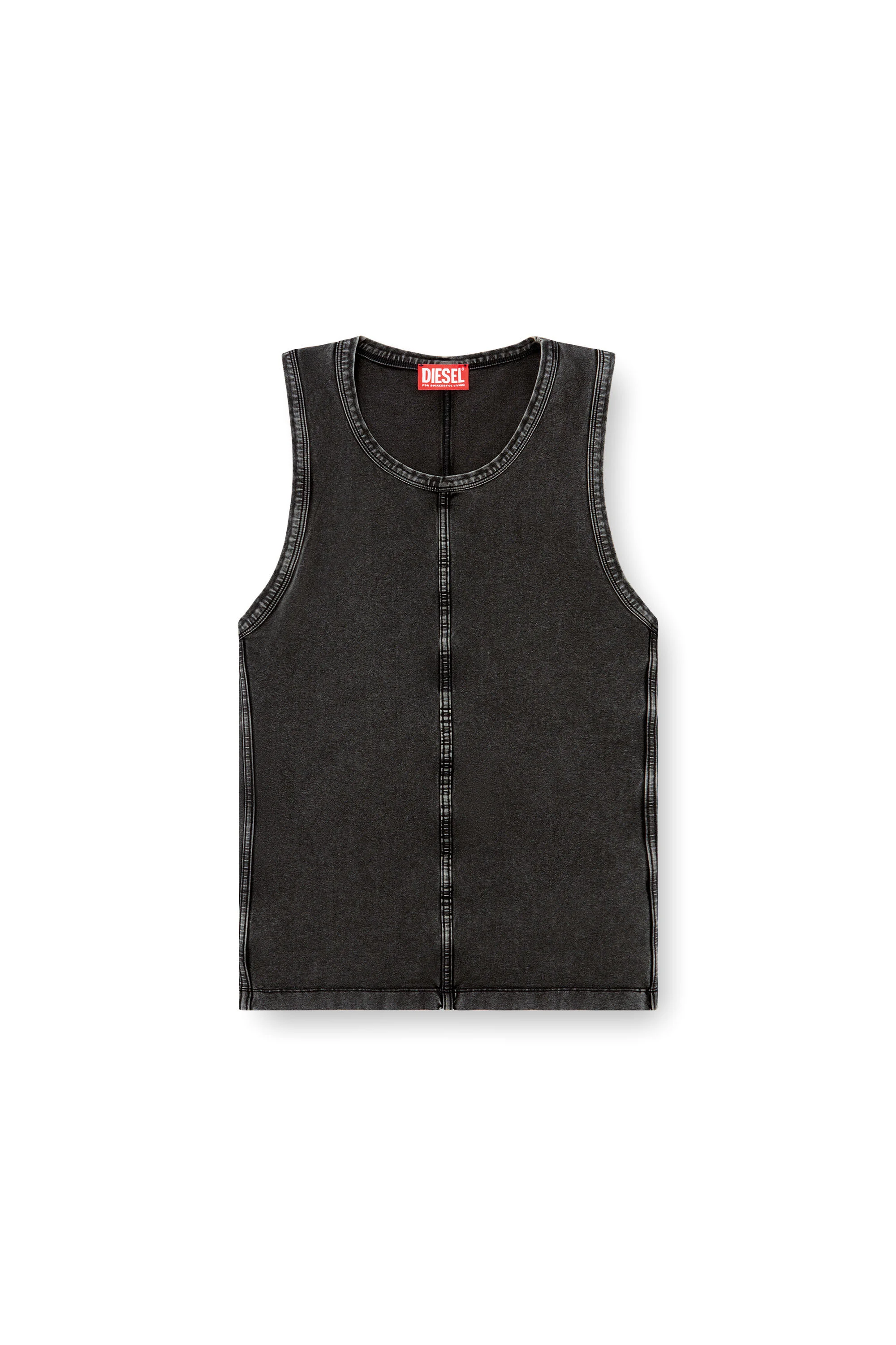 Product Description Panelled for a slim fit, this men's jersey tank top is an ode to Diesel's denim DNA. Not only is it treated to mimic the marbled look of acid-wash black denim, but it features our iconic fifth-pocket flag on the side too. ID: A186800KIBY Size & Fit Model is wearing a size L and is 182 cm / 5'10'' Check the size chart to choose the correct size. Materials & Details Composition: 93%Cotton 7%Elastane-Spandex Slim fit
