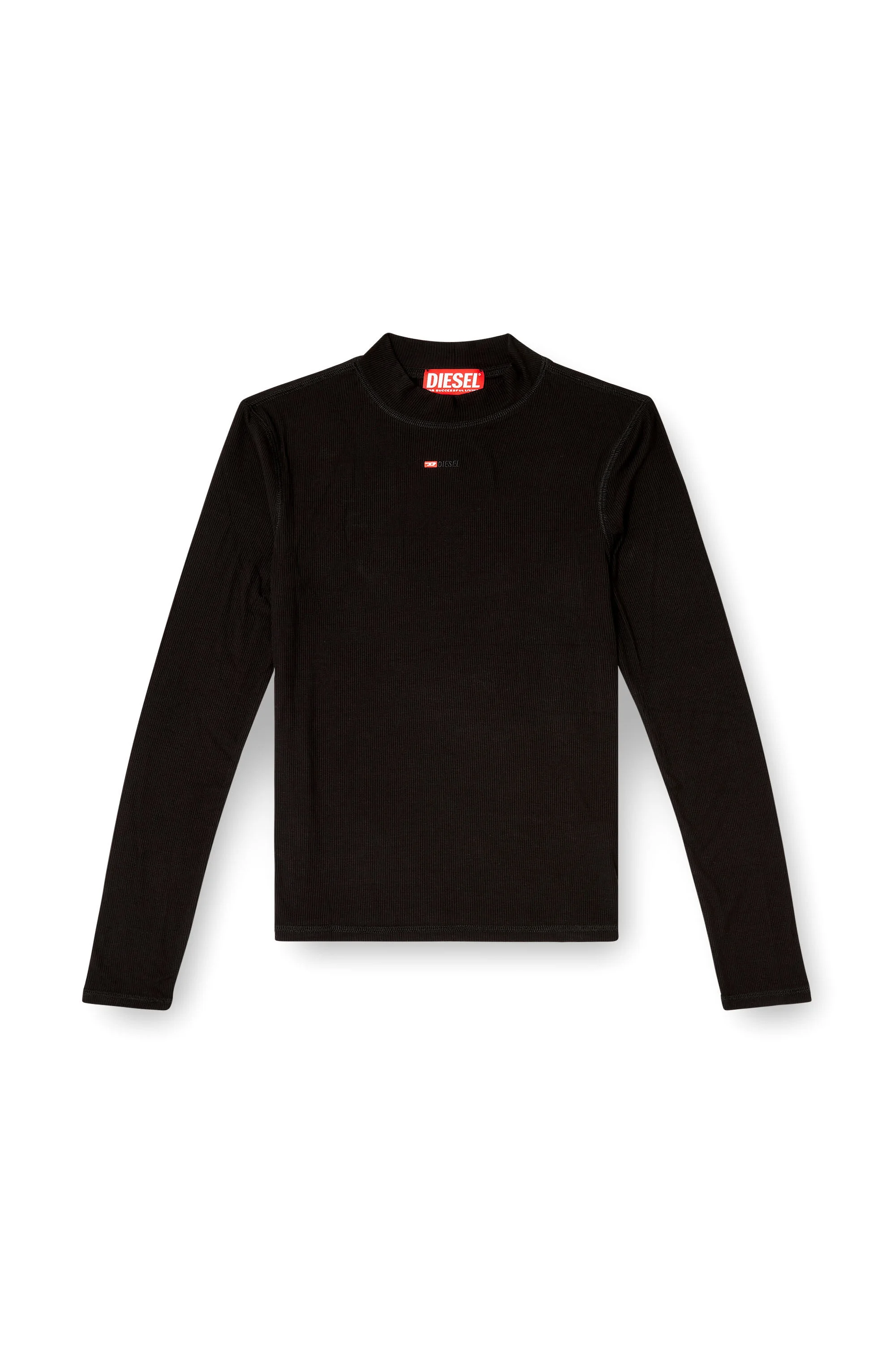 Model is wearing a size L and is 182 cm / 5'10''. Model is wearing a size S and is 175 cm / 5'7''. UNISEX SIZES. FOR MAN: Fits true to size, take your normal size. FOR WOMAN: Oversize fit, woman that prefers regular fit may order one size down. Designed for all genders, this long-sleeve top is embroidered with a micro version of the Denim Division 'D' logo right beneath the mock neck. It’s cut from ribbed jersey made using ECOVERO™ fibres mixed with stretch and has a close-fitting silhouette.