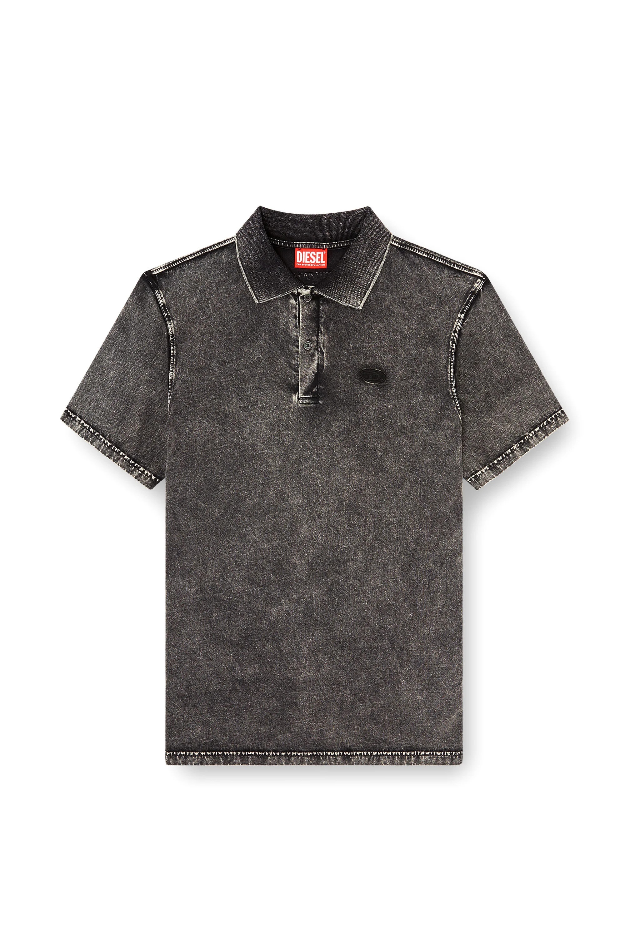 Product Description Jersey takes on the identity of acid-wash denim in this men’s polo shirt. Cut from certified organic cotton in a regular fit, it carries two Oval D signatures – an embroidered mark on the chest and a bold, frayed patch across the back. ID: A209550HGBX Size & Fit Model is wearing a size L and is 182 cm / 5'10'' Check the size chart to choose the correct size. Materials & Details Composition: 100%Cotton Regular fit Two-button placket