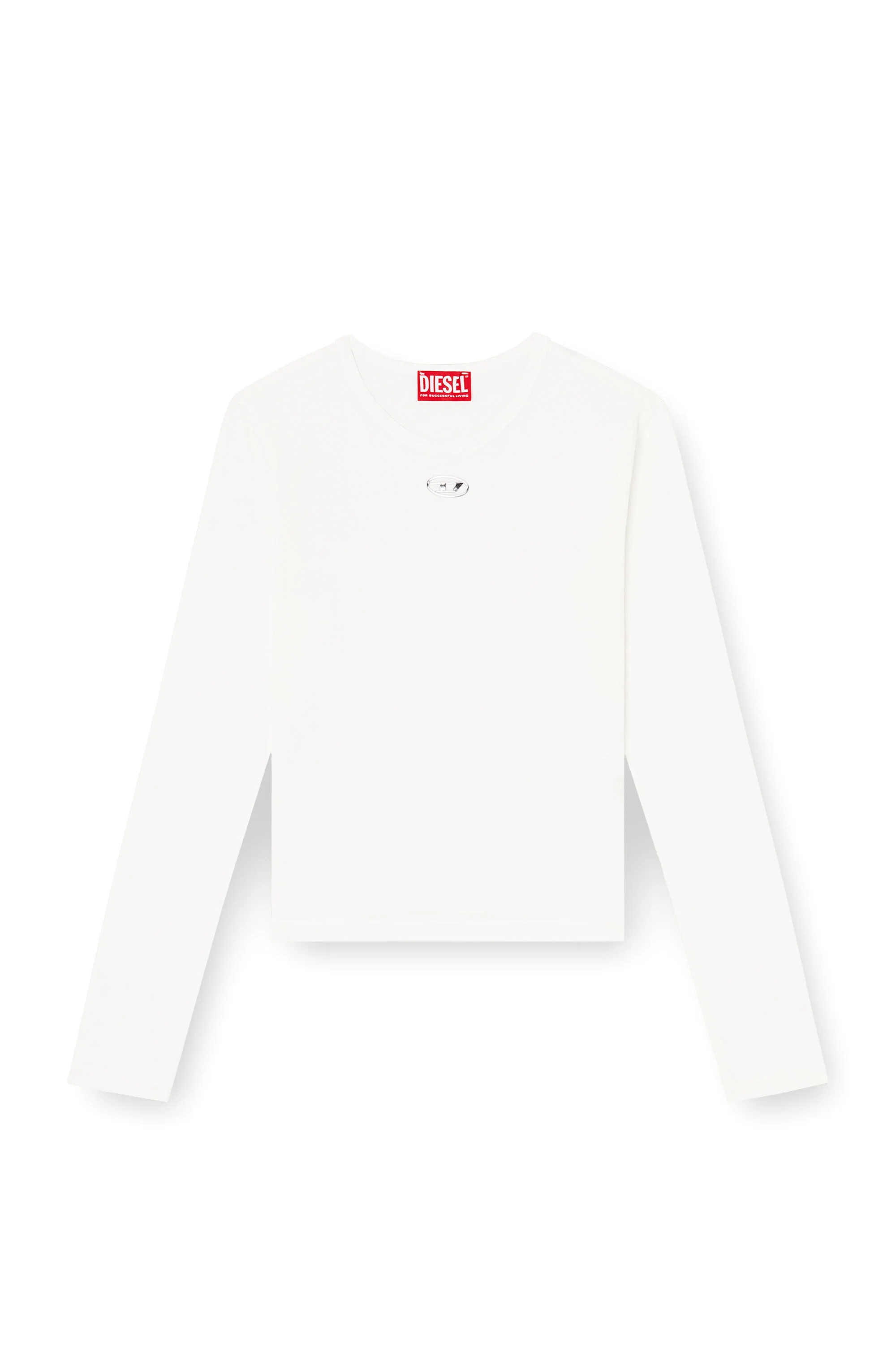 Product Description Slim-fit crewneck top with long sleeves. Made of stretch cotton, it features a silver injection-print Oval D logo on the front. ID: A199160AHQH Size & Fit Model is wearing a size S and is 175 cm / 5'7'' Check the size chart to choose the correct size. Materials & Details Composition: 95%Cotton 5%Elastane-Spandex, Rib 98%Cotton 2%Elastane-Spandex Slim fit Crew neck Metal Oval D logo