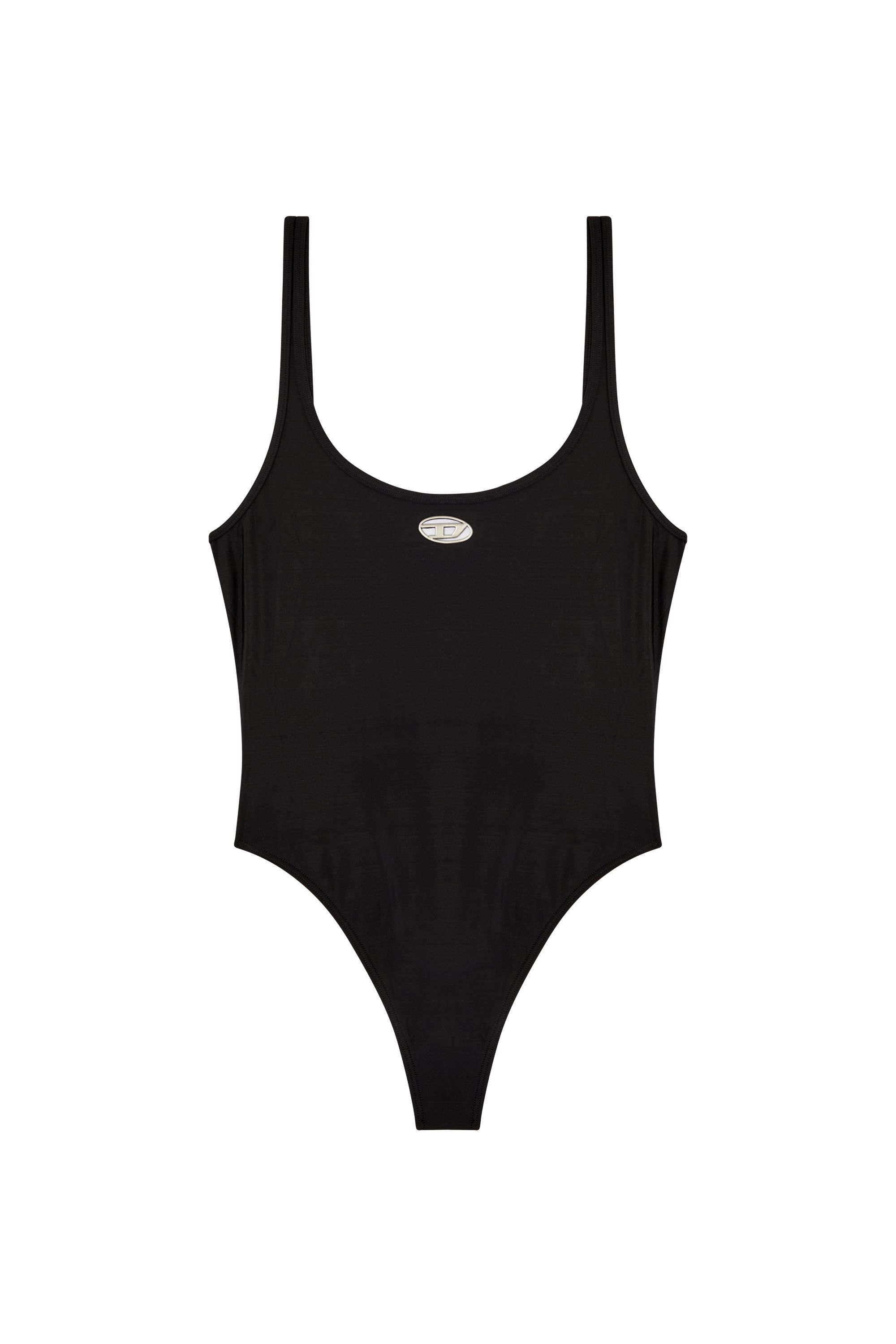 Product Description A solid colour design with a Diesel twist, this women's bathing suit is embellished with a cut-out Oval D logo that creates a cheeky peekaboo effect on the chest. It's crafted using recycled materials and has a double scoop neck and high-cut legs. ID: A174730LHBP Size & Fit Model is wearing a size S and is 175 cm / 5'7'' Check the size chart to choose the correct size. Materials & Details Composition: 80%Polyamide-Nylon 20%Elastane-Spandex Double scoop neck TPU Oval D logo Seam down the centre back Recycled stretch lining