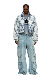 Product Description This women's winter puffer jacket is made from argyle quilted denim distressed with devore – the treatment creates areas of sheerness, bringing the garment’s coloured padding into the spotlight. The high neckline and drawstring-adjustable cuffs and hem help trap heat. ID: A193890LKCP Size & Fit Model is wearing an IT size 40 and is 175 cm / 5'7'' Check the size chart to choose the correct size. Materials & Details Composition: 100%Polyester Relaxed fit High neck and zip pockets Drawstring cuffs and hem Two-way zip closure Lined and padded