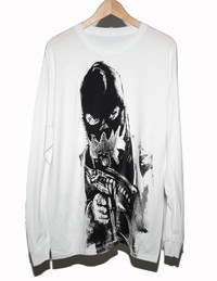Asspizza Pumpkin Mask Shooter Long Sleeve *RARE*. This shirt I've only seen a hand full of and they are going fast. This is a piece of underground NYC fashion history. There are black streaks in areas of this shirt but that's just how Asspizza screen prints his shirts, messy. Brand Spanking new T-Shirt fresh out the infamous mystery box. High Quality screen prints. What else is there to really say? If you know you know. The hottest independent designer out of NYC ! Shoulder to shoulder: 21' Pit to pit : 20.5 Shoulder to bottom : 28' Size: Large Material: Cotton Color: White *Measurements are approximate* All orders will be shipped the next day after payment is sent. For any questions feel free to message me.
