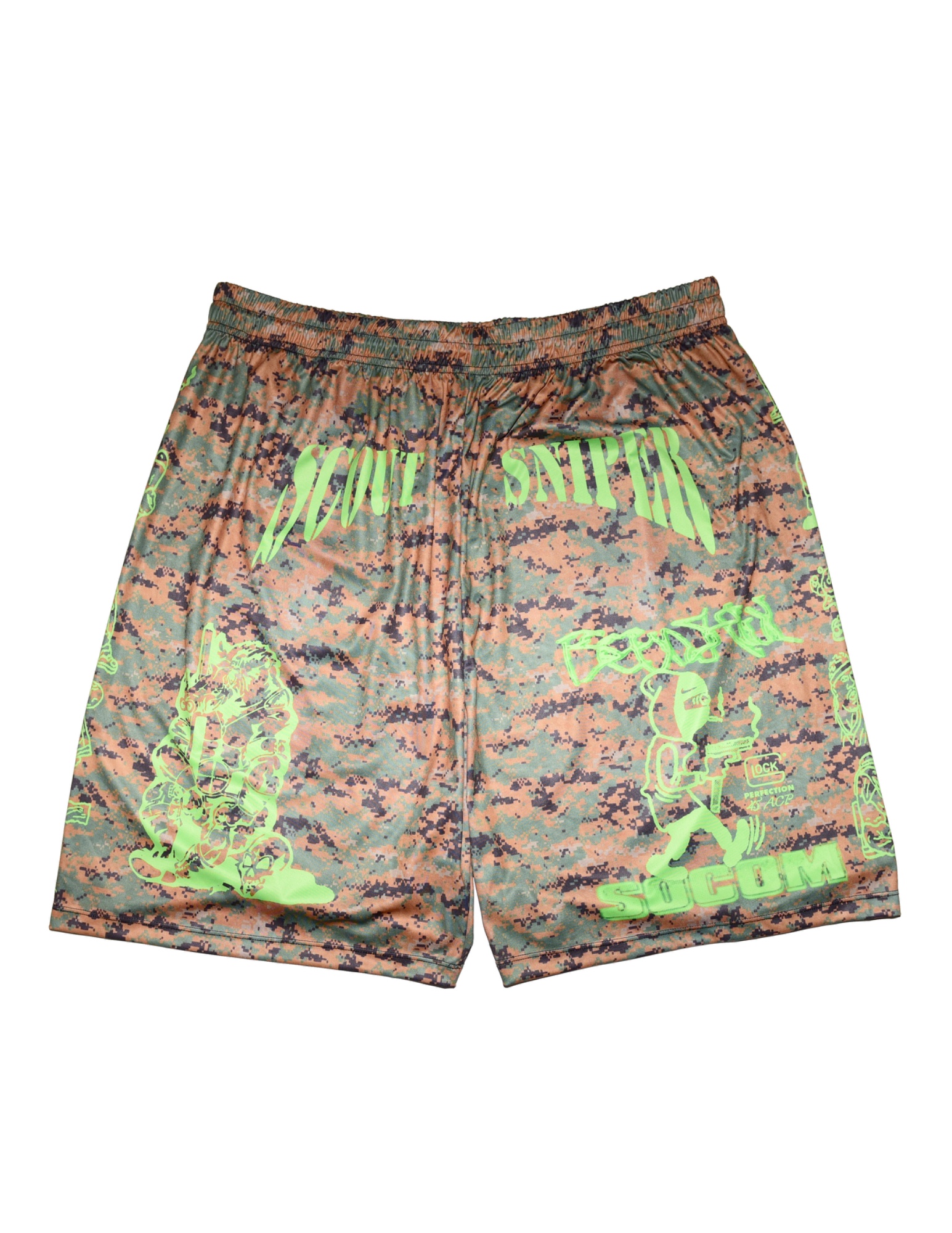 Beenshill Scout Sniper Digi Camo Basketball Shorts Calling all neurodivergent fashion nerds! Channel your wigger energy with this very limited tee from the mentally disturbed artist BeenShill. Known for his work with FUCT and no longer making his politically charged brainrot clothing this is one of the last pieces he dropped. These have a cool long / baggy fit to them. No Pockets. Adjustable drawstring and stretch to fit a variety of size types. Size XXL on Tag Waist (measured all the way around) : 36’ Waist Fully Stretched : 56’ Waist to cuff : 24.5’ Inseam : 7.5’ Front Rise : 16’ Leg opening : 16’ *Measurements are approximate* *Most of these Garments are second hand unless stated otherwise, please determine the condition and any markings or wear based on the high res photos provided* All orders will be shipped the next day after payment is sent. For any questions feel free to message me.