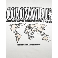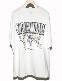 Blazzy Coronavirus UV Activated Tee . This tee is from a sold out collection from 2020 when the pandemic was only at 100k cases. The tee features a UV screenprint that when under sunlight changes colors to show effected countries on the map as well as the face on the back turning yellow. **This shirt has some "invisible" bleach stains that can only be seen in UV light. Please be aware of this before purchasing. The only way to fix this is either using RIT color remover, dying the shirt a different color (or only wearing the shirt indoors or at night).** shoulder to shoulder : 27’ Pit to pit : 27’ Shoulder to bottom : 32.5’ Shoulder to Cuff : 9’ Size: XXXL *Measurements are approximate* *Most of these Garments are second hand, please determine the condition and any markings or wear based on the high res photos provided* All orders will be shipped the next day after payment is sent. For any questions feel free to message me. For Depop customers check out @digitaltrenches on all selling platforms for more pictures