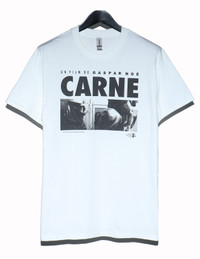 Gaspar Noé Carne Promotional Tee Incredibly rare and incredibly hard to find. If you are a fan of Gaspar Noé you may or may not know that shirts or officially licensed promotional merchandise for his films are scarce and hard to find aside from posters. Imported from a Japanese home video shop. I wish this shirt was my size but unfortunately it is not. Noe fans don't sleep on this grail. Has a small unnoticeable dirt stain on back that can likely be removed fairly easily. Shoulder to shoulder : 21’ Pit to pit : 21’ Shoulder to bottom : 30.5’ Shoulder to cuff : 7.5’ Size: Large *Measurements are approximate* *Most of these Garments are second hand, please determine the condition and any markings or wear based on the high res photos provided* All orders will be shipped the next day after payment is sent. For any questions feel free to message me.