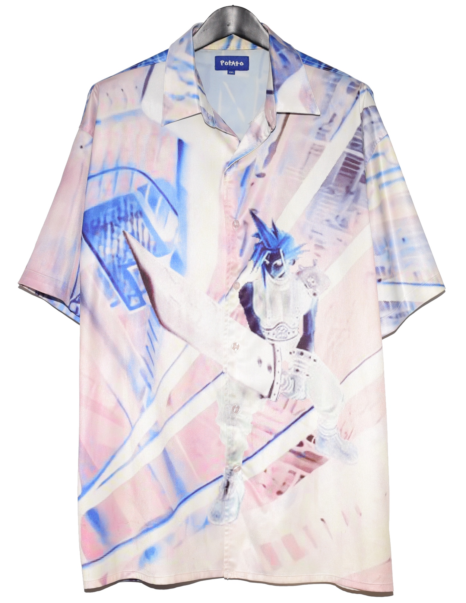 Imran Potato Final Fantasy Cloud Hawaiian Shirt Rare sold out Imran Potato FF shirt from 2019. Very silky and robust fabric with a low res image of Cloud from Final fantasy. High quality and oversized. Rare size 2XL. Perfect for a summer of lovin. Gently used but treated with care. Size XXL on tag Shoulder to shoulder : 24.5’ Pit to pit : 27’ Shoulder to bottom : 33.5’ Shoulder to cuff : 11’ *Measurements are approximate* *Most of these Garments are second hand unless stated otherwise, please determine the condition and any markings or wear based on the high res photos provided* All orders will be shipped the next day after payment is sent. For any questions feel free to message me.