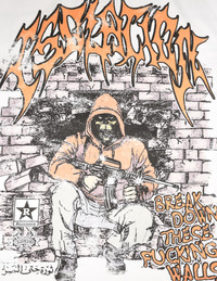 Isolation Youth of Today Hardcore Tee "the 1980s Youth Crew movement in American hardcore and Palestinian resistance during the First Intifada shared a rejection of systems of oppression. One through the newly emerging hardcore punk scene, the other through collective struggle, civil disobedience and armed uprising. Youth Crew bands like Youth of Today preached solidarity, direct action, and resistance to fascism. Palestinian youth were the living embodiment, all while faced with militarized occupation and grotesque violence and brutality. Both movements echo pararell ethos: self-determination, steadfastness, and the struggle for liberation and justice." Super rare sold out - 7 oz heavy weight cotton with two-sided print. Distressed and scored collar ribbing, sleeve and bottom hem. 240 gsm, 100% Cotton, Box Body Fit. Size XXL on tag Pit to pit : 27.5' Shoulder to bottom : 31.5' Shoulder to cuff : 8' *Measurements are approximate* *Most of these Garments are second hand unless stated otherwise, please determine the condition and any markings or wear based on the high res photos provided* All orders will be shipped the next day after payment is sent. For any questions feel free to message me.