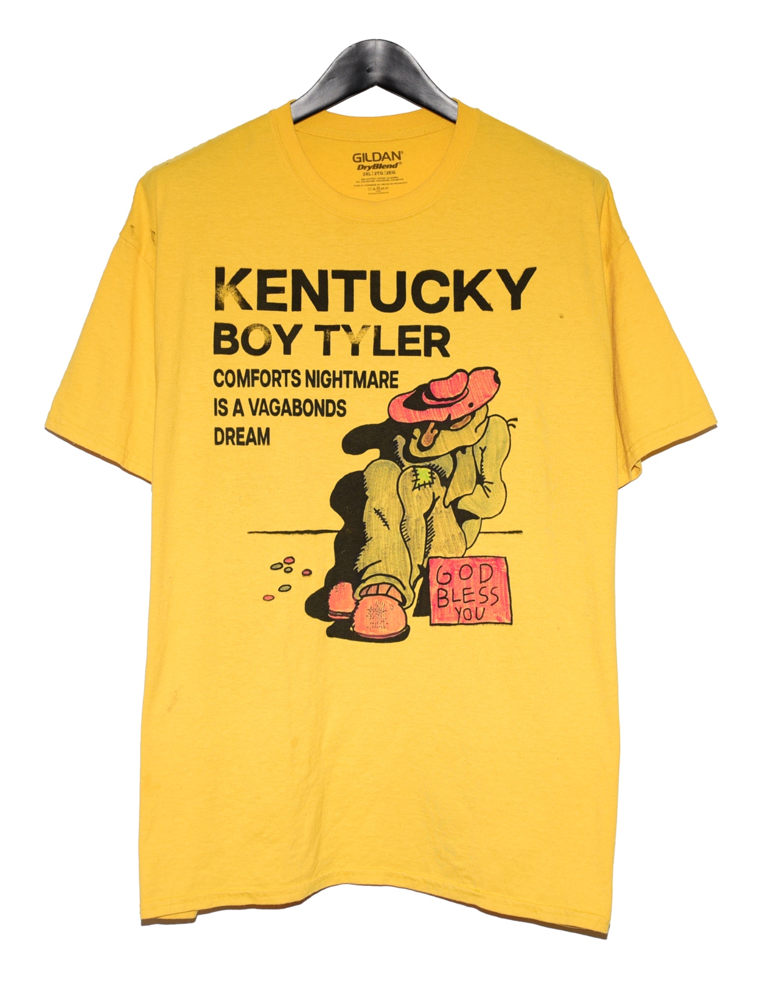 Kentucky Boy Tyler S/S 24' Vagabond Tee High quality screen print sharpie design on an upcyled vintage super soft oversized tee. From his Spring summer 24' collection. Kentucky Boy Tyler first started out under Asspizza and grew to make his own brand that has collaborated with or been associated with underground legends like Haveagreatday magazine ( HAGD ), Will Mahony, Redrum Dogpound, Asspizza, Kerwin Frost, Haunted Starbucks, Shadow Wizards, Beenshill, Spaghetti Boys, Lamour Supreme, Joeyy, Sam Hyde, and many many others. Size XXL on tag Pit to pit : 26’ Shoulder to bottom : 32’ *Measurements are approximate* *Most of these Garments are second hand unless stated otherwise, please determine the condition and any markings or wear based on the high res photos provided* All orders will be shipped the next day after payment is sent. For any questions feel free to message me.