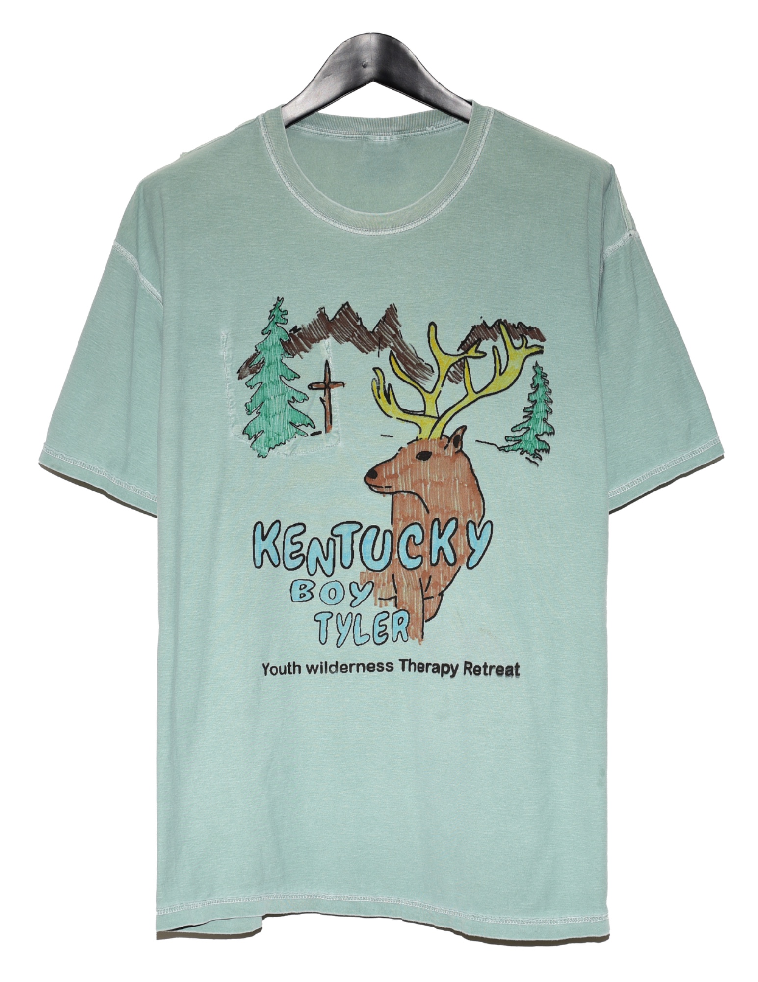 Kentucky Boy Tyler S/S 24' Youth Wilderness Retreat Tee High quality screen print sharpie design on an upcyled vintage super soft oversized pocket tee, pocketless pocket tee. From his Spring summer 24' collection. Size XXL on tag Shoulder to shoulder : 22.5’ Pit to pit : 24.5’ Shoulder to bottom : 30’ Shoulder to cuff : 8.5’ *Measurements are approximate* *Most of these Garments are second hand unless stated otherwise, please determine the condition and any markings or wear based on the high res photos provided* All orders will be shipped the next day after payment is sent. For any questions feel free to message me. Kentucky Boy Tyler S/S 24' Youth Wilderness Retreat Tee High quality screen print sharpie design on an upcyled vintage super soft oversized pocket tee, pocketless pocket tee. From his Spring summer 24' collection. Kentucky Boy Tyler first started out under Asspizza and grew to make his own brand that has collaborated with or been associated with underground legends like Haveagreatday magazine ( HAGD ), Will Mahony, Redrum Dogpound, Asspizza, Kerwin Frost, Haunted Starbucks, Shadow Wizards, Beenshill, Spaghetti Boys, Lamour Supreme, Joeyy, Sam Hyde, and many many others. Size XXL on tag Shoulder to shoulder : 22.5’ Pit to pit : 24.5’ Shoulder to bottom : 30’ Shoulder to cuff : 8.5’ *Measurements are approximate* *Most of these Garments are second hand unless stated otherwise, please determine the condition and any markings or wear based on the high res photos provided* All orders will be shipped the next day after payment is sent. For any questions feel free to message me.