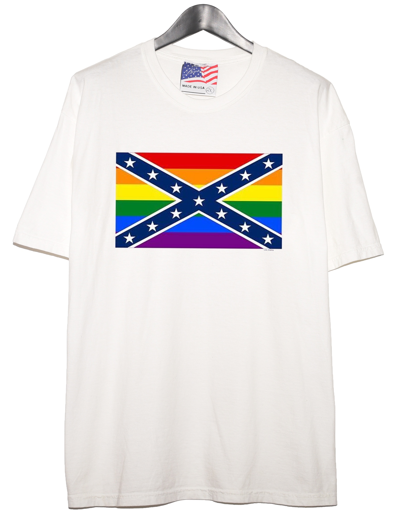LoveAmerica Rebel Pride Tee Rare sold out tee from provocateur brand LoveAmerica. As seen on Sam Hydes's Fishtank this LGBTQ inspired tee may have crossed your eye from one of many alt influencers around the web. Now is your chance to show your rebel pride! Has two green dots on the sleeve that aren't noticeable and can likely be removed fairly easily. The tee was only worn once. Size XXL on tag Shoulder to shoulder : 23.5’ Pit to pit : 23.5’ Shoulder to bottom : 31.5’ Shoulder to cuff : 9.5’ *Measurements are approximate* *Most of these Garments are second hand unless stated otherwise, please determine the condition and any markings or wear based on the high res photos provided* All orders will be shipped the next day after payment is sent. For any questions feel free to message me.