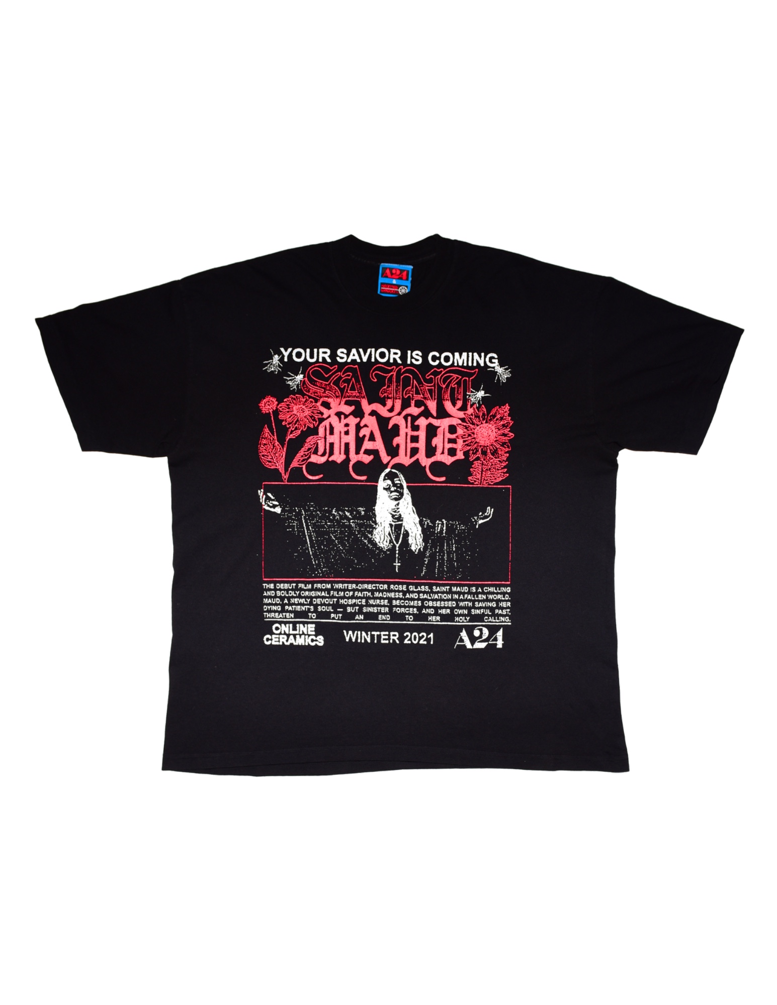 Online Ceramics A24 Saint Maud 'Obedient' Tee Obedient Only To My Master Satan Saint Maud super rare size XXL Online Ceramics for Rose Glass' and A24s "Saint Maud". Worn a few times. Treated and stored with care. Print in excellent condition. One of my absolute favorite Online Ceramic shirts of all times. Incredibly hard to come by these especially in 2XL Saint Maud known for Saint Maud and now Love Lies Bleeding came together with A24 and Online ceramics to bring another super hype and rare collection off the back of Online Ceramics Midsommar and VVitch drop. These are some of online ceramics highest quality prints in my opinion and you can really see that compared to shirts they make today. Don't sleep on this absolute grail. Size XXL on tag shoulder to shoulder : 26’ Pit to pit : 26’ Shoulder to bottom : 32.5’ Shoulder to Cuff : 9.5’ *Measurements are approximate* *Most of these Garments are second hand unless stated otherwise, please determine the condition and any markings or wear based on the high res photos provided* All orders will be shipped the next day after payment is sent. For any questions