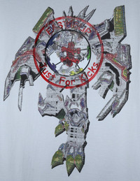 RoseMoor Sigil Gundam Tee 1 of 1 sublimation Print from Ryan RoseMoor on an upcycled tee. Known for his ominous and experimental designs Ryan Rosemoor is heavy-hitter in the DIY clothing scene. Size L on tag Shoulder to shoulder : 20’ Pit to pit : 19.5’ Shoulder to bottom : 29.5’ Shoulder to cuff : 7.5’ *Measurements are approximate* *Most of these Garments are second hand unless stated otherwise, please determine the condition and any markings or wear based on the high res photos provided* All orders will be shipped the next day after payment is sent. For any questions feel free to message me.