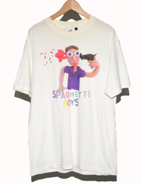 Spaghetti Boys Kill Yourself Tee From now defunct NYC streetwear collective Spaghetti Boys comes this incredibly rare graphic tee from the blink of a moment in contemporary streetwear culture. Some very minor pilling. Due to the provocative nature of this shirt and how rare these are to come by coupled with the fact they sold out very fast and were never restocked I won't be letting this shirt go easily. But if you want to own a shirt from a cornerstone in fashion and culture this is your chance. shoulder to shoulder : 23’ Pit to pit : 21.5’ Shoulder to bottom : 31’ Size: Large *Measurements are approximate* *Most of these Garments are second hand, please determine the condition based on the high res photos provided* All orders will be shipped the next day after payment is sent. For any questions feel free to message me.