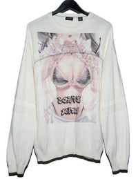 Torchher "Death Wins" 1/1 Cable Knit Sweater This insane 1 of 1 cable knit sweater comes from DIY artist Torchher Brand. Hand sublimation printed on a vintage IZOD cable knit sweater. There's no world that you can go wrong rocking an oversized cable knit featuring a big titty anime vamp girl. Size XL on tag Shoulder to shoulder : 22’ Pit to pit : 24’ Shoulder to bottom : 29.5’ Shoulder to cuff : 28’ *Measurements are approximate* *Most of these Garments are second hand unless stated otherwise, please determine the condition and any markings or wear based on the high res photos provided* All orders will be shipped the next day after payment is sent. For any questions feel free to message me.