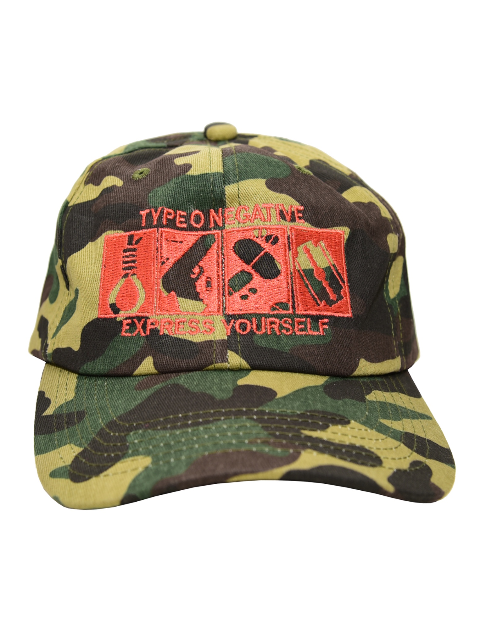 Type O Negative "JUST SAY YES" Hat By Goth Brooks Custom embroidered hat by Goth Brooks. Express yourself or rep Brooklyn in the best way possible with this Type O Negative high quality orange embroidery on a vintage wash camo hat. Only released for 24 hours so very few of these exist. *Measurements are approximate* *Most of these Garments are second hand unless stated otherwise, please determine the condition and any markings or wear based on the high res photos provided* All orders will be shipped the next day after payment is sent. For any questions feel free to message me.
