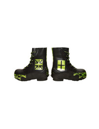 Vintage Aphex Twin Bunny Rave Boots by Digital Trenches APHEX TWIN boots hand airbrush acrylic paint on a pair of vintage general issue Bata Bunny Boots (1987). Custom slime rope laces. Featuring some cybernetic inspired designs, these cold weather stompers were heat treated to ensure the designs will last. As seen on the RAF Simons runway these hand painted boots are the only one of their kind. Expect some cracking but these boots are not for the weak. SIZE 10XW (Extra Wide) Rare new 1 of 1 collection from Digital Trenches. Garments made using experimental techniques all hand made DIY. Airbrush using stencil on high quality pieces. These garments may have imperfections****** but they were all made and cured painstakingly by hand. Hand wash/ spot clean ONLY. *Measurements are approximate* *Most of these Garments are second hand unless stated otherwise, please determine the condition and any markings or wear based on the high res photos provided* All orders will be shipped the next day after payment is sent. For any questions feel free to message me.