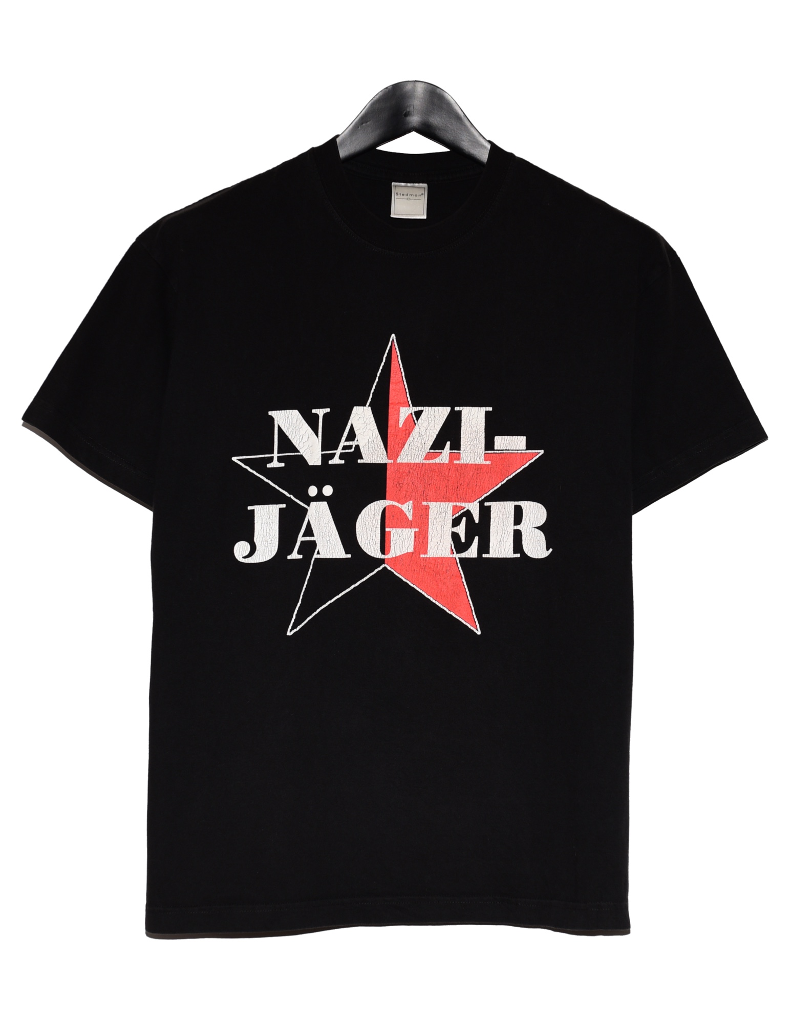 Vintage Nix Gut Nazi-Hunter Punk Tee Vintage tee from 90s-Punk mail order Ukrainian brand Nix Gut. Nazi-Jäger translates to Nazi-Hunter in German. Cool piece of anti fascist history. Vintage fading black with cracking screen print. Small stain on front, isn't very noticeable and may very well be able to be removed (see last photo). No size listed on tag Shoulder to shoulder : 20’ Pit to pit : 19.5’ Shoulder to bottom : 26’ Shoulder to cuff : 7.5’ *Measurements are approximate* *Most of these Garments are second hand unless stated otherwise, please determine the condition and any markings or wear based on the high res photos provided* All orders will be shipped the next day after payment is sent. For any questions feel free to message me.