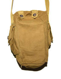 Vintage USA GI Military Gas Mask Bag Vintage bag used to hold military gas masks. I am unsure of the exact date this was manufactured but based on the rusty buttons I would say anywhere from the 60s-80s. Could be used as a purse/ Shoulder bag. Length: 12’ Width: 8’ Handle length: 25’ *Measurements are approximate* *Most of these Garments are second hand unless stated otherwise, please determine the condition and any markings or wear based on the high res photos provided* All orders will be shipped the next day after payment is sent. For any questions feel free to message me.