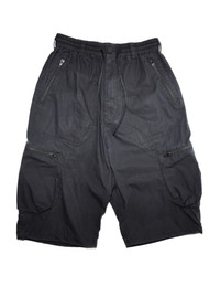 Y-3 M Tech Cargo Shorts Perhaps the my favorite silhouette shorts from Yohji Yamamotos collaborative line with Adidas. The M Tech cargo shorts are the quintessential gorpcore clothing item. These shorts are made from a material called baumwolle cotton add the waxed type finish and these shorts are an incredible light weight weatherproof piece of fashion. The material is comparable to nylon but thicker and more robust. The shorts feature several pockets, a buttoned stretchable waist, as well as drawstrings at the waist and adjustable hidden drawstrings at the cuffs. The rubber Y-3 logo on the back pocket is a bit tattered but besides that these are in great condition. Size XS on Tag Waist (measured all the way around) : 26’ Waist Fully Stretched : 40’ Waist to cuff : 25.5’ Inseam : 11’ Front Rise : 17’ Leg opening : 11’ *Measurements are approximate* *Most of these Garments are second hand unless stated otherwise, please determine the condition and any markings or wear based on