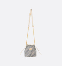 The mini bucket bag with cord enhances the 30 Montaigne line with a gracefully casual design. The style elegantly combines light biscuit smooth calfskin with blue chambray — a lightweight cotton denim embroidered with ultra-durable raffia thread forming the iconic Dior Oblique motif. Accented by an antique gold-finish metal CD signature on the front, it reveals a drawstring compartment to hold all the essentials. The adjustable and removable chain strap has a leather insert that allows it to be comfortably carried by hand, worn over the shoulder or crossbody. - Main composition: cotton, calfskin and technical fabric - Lambskin and technical fabric lining - CD signature on the front - Drawstring closure - Interior compartment - Three card slots - Adjustable and removable chain with leather insert and antique gold-finish metal CD links - Dust bag included - Made in Italy Size & Fit - Dimensions: 16 x 18.5 x 13 cm / 6.5 x 7.5 x 5 inches (Length x Height x Width) - The size is suitable for a card holder and phone - Size and weight details may vary depending on the product's material