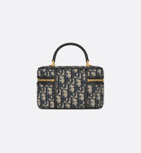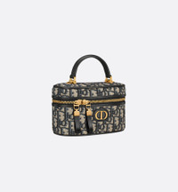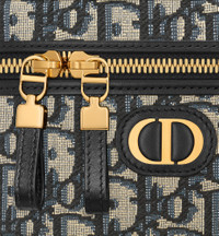 The 30 Montaigne mini vanity case expands the line with a compact design that is both functional and refined. Constructed in blue Dior Oblique jacquard, it is accented by a CD signature on the front. The vanity case will accommodate all the essentials and is completed by an interior pocket and mirror. It can be carried by hand with the handle or worn over the shoulder or crossbody using the adjustable shoulder strap that alternates between gold-finish metal and blue enamel links with a leather insert for added comfort. - CD signature on the front - Zip closure with CD pull - Top handle - One compartment with mirror - Interior patch pocket - Adjustable and removable leather shoulder strap - Made in Italy Size & Fit - Dimensions: 16.5 x 8 x 9.5 cm / 6.5 x 3 x 3.5 inches (Length x Height x Width) - The size is suitable for a phone, a card holder and lipstick
