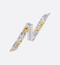 The ABCDior Mitzah scarf, crafted in silk twill, showcases one of 26 flowers that represent Christian Dior's love of nature. A passion that flourishes like never before upon Maria Grazia Chiuri's delicate creations in a celebration of botanical beauty. Precious flowers of a starry universe, these bright yellow corollas turn and wander, as if suspended in an ethereal atmosphere. Enhanced by a contrasting Christian Dior signature jacquard band on the back, the ivory multicolor Mitzah scarf adds the finishing touch to any look and may be tied around the neck, at the wrist or on a bag. - ABCDior print - Letter U Uncarina - Univers - Contrasting jacquard band with Christian Dior signature on back - Pointed ends - 100% silk twill - Made in Italy - Sold with leaflet Size & Fit - Dimensions: 6 x 105 cm / 2.5 x 41.5 inches