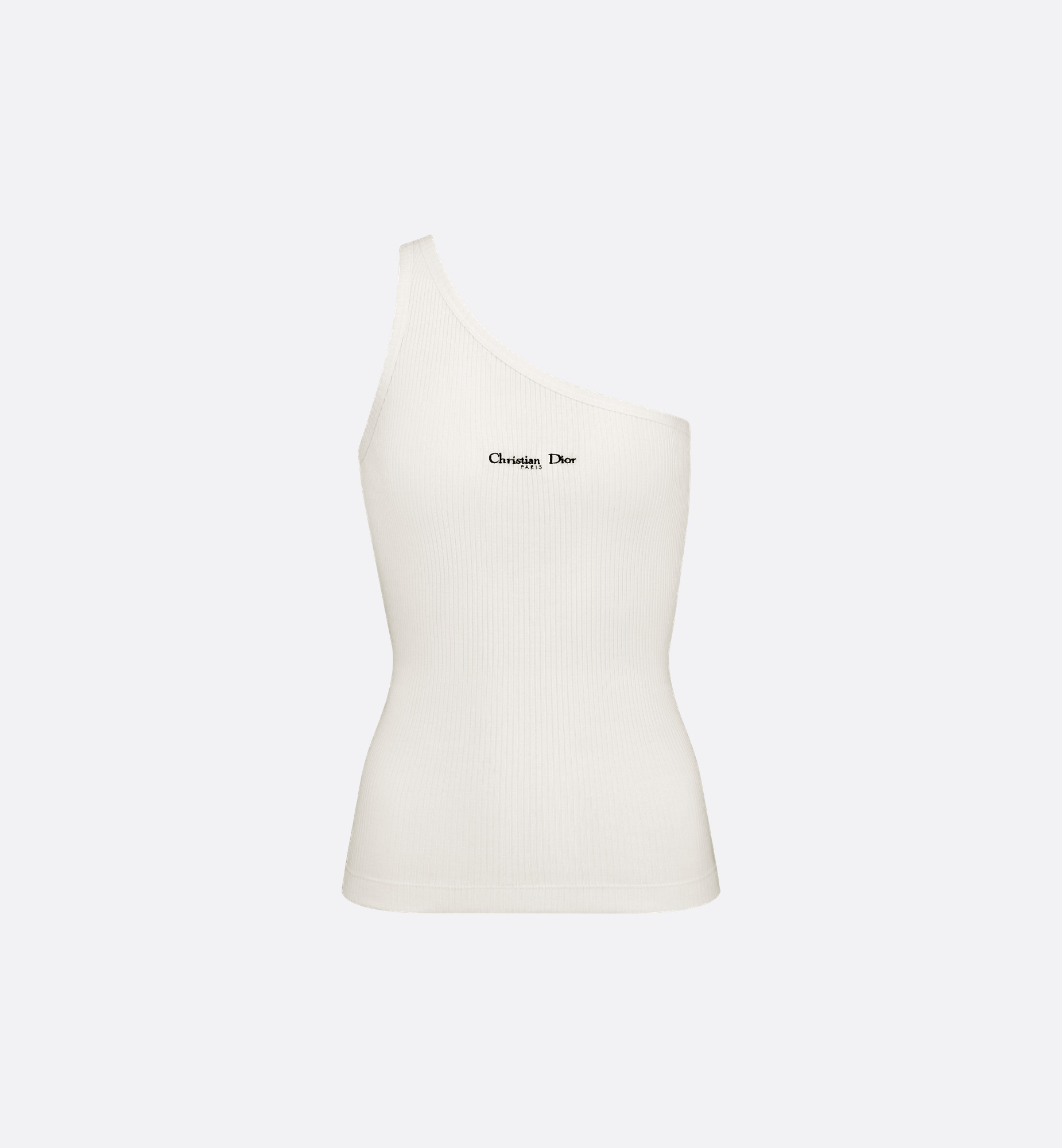 The tank top is a creation combining sportswear codes with a couture spirit. Crafted in white ribbed cotton jersey, it features an asymmetric style enhanced by the Christian Dior Paris embroidery on the front. True to the spirit of the show, the tank top can be coordinated with any of the season's casual or couture looks. - Christian Dior Paris embroidery on the front - Asymmetric style - 100% cotton - Made in Italy - Treat with extra care and gently dry clean Size & Fit - Fitted silhouette - Sleeveless - The model measures 178 cm / 70 inches and the item shown is in size S (FR) - Using our personalized tool will provide you with the best size recommendation - For more information, please review the size guide