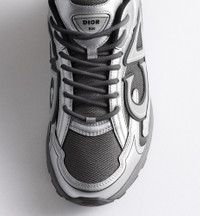 The B30 Countdown sneaker is a new House essential, distinguished by its modern and sporty silhouette. Crafted in deep gray mesh with silver-tone metallic technical fabric, it is enhanced by a reflective gray CD30 signature with a graphic aesthetic. The B30 Countdown also features silver-tone Dior B30 and CD30 signatures on the tongue and back. A sculpted and ultralightweight rubber sole spotlights various hallmark details, while elastic on the interior provides optimal comfort. The B30 Countdown sneaker will complete any casual outfit. - Main composition: mesh and metallic technical fabric - Technical mesh and calfskin lining - Gray reflective CD30 signatures on the sides and back - Dior B30 signature tongue - Low top - Lace-up closure - Deep gray ultralightweight sculpted rubber outsole with Dior signature - Sole with Dior, CD30 and B30 signatures - Welded construction - Dust bag included - Made in Italy Size & Fit - The style fits true to size, we recommend ordering your normal shoe size - Using our personalized tool will provide you with the best size recommendation - For more information, please review the size guide