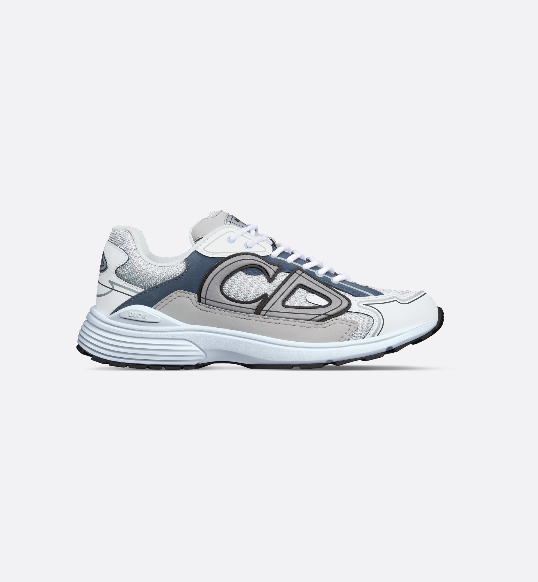 The B30 Countdown low-top sneaker is a new House essential distinguished by its modern and sporty silhouette. Crafted in gray technical mesh with light blue, blue and gray technical fabric, it is enhanced by a reflective CD30 signature with a graphic aesthetic. The B30 Countdown also features silver-tone Dior B30 and CD30 signatures on the tongue and back. A sculpted and ultralightweight rubber sole spotlights various hallmark details, while elastic on the interior provides optimal comfort. The B30 Countdown sneaker will complete any casual outfit. - Main composition: technical mesh, technical fabric and glass - Technical mesh lining - Reflective CD30 signatures on the back and sides - Dior B30 signature tongue - Low top - Lace-up closure - EVA, PVC and TPU insole - Light blue ultralightweight sculpted rubber outsole with Dior, CD30 and B30 signatures - Welded construction - Dust bag included - Additional set of light blue laces provided - Made in Italy Size & Fit - The style fits true to size, we recommend ordering your normal shoe size - Weight: 405 g / 14.5 ounces - Weight details may vary depending on the product's material - Using our personalized tool will provide you with the best size recommendation - For more information, please review the size guide