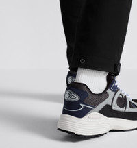 The B30 low-top sneaker has become a new House essential distinguished by its modern and sporty silhouette. Crafted in anthracite gray mesh with black, blue and Dior gray technical fabric, it is enhanced by a reflective CD30 signature with a graphic aesthetic. The B30 also features silver-tone Dior B30 and CD30 signatures on the tongue and the back of the sneaker. A sculpted ultralightweight rubber sole embellished with various hallmark details and an interior elastic band provide optimal comfort. The B30 sneaker will complete any casual outfit. - Main composition: technical fabric - Technical mesh and cowhide leather lining - Reflective CD30 signatures on the back and sides - Tongue with Dior B30 signature - Low top - Lace-up closure - White ultralightweight sculpted rubber outsole with black Dior signature edging - Two-tone sole with Dior, CD30 and B30 signatures - Welded construction - Dust bag included - Made in Italy Size & Fit - The style fits true to size, we recommend ordering your normal shoe size - Weight: 405 g / 14.5 ounces - Using our personalized tool will provide you with the best size recommendation - For more information, please review the size guide