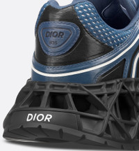 The B35 NXXT sneaker stands out with futuristic appeal. The openwork architectural sole with the Cannage motif demonstrates the House's mastery of innovation. The sole is crafted to be voluminous yet lightweight, for remarkable stability and a silhouette with a dynamic feel. The blue and black technical fabric and blue two-layer technical mesh upper creates a subtle contrast reminiscent of a running shoe from the 1990s. The graphic lines and high-frequency Dior and 47 signatures highlight the contemporary look, while the Dior B35 patches on the tongue and heel counter add the finishing touches to the exceptional style. The sneaker ensures optimal comfort and stability. - Main composition: technical mesh and fabric - Technical mesh lining - Dior and 47 signatures on the sides - Dior B35 signature on the tongue and heel counter - Low top - Lace-up closure - Openwork Cannage outsole with Dior signature - Welded construction - Dust bag included - Additional set of blue cotton laces provided - Made in Italy Size & Fit - The style fits true to size, we recommend ordering your normal shoe size - Weight: 800 g / 28 ounces - Weight details may vary depending on the product's material - Using our personalized tool will provide you with the best size recommendation - For more information, please review the size guide