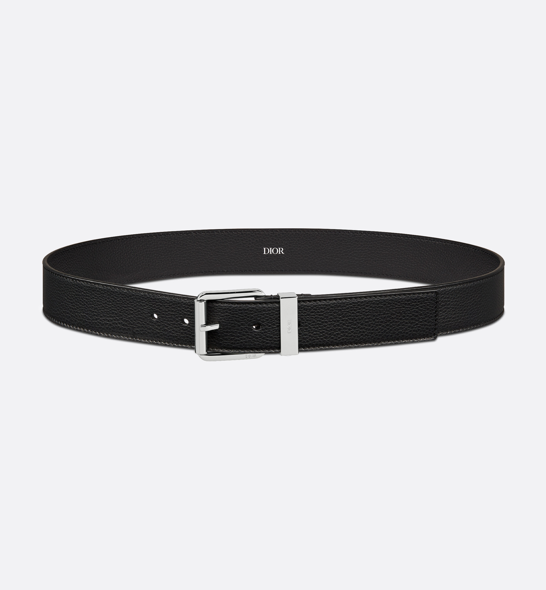 Combining elegance and modernity, the belt is crafted in black grained calfskin and embellished with a palladium-finish brass buckle. Featuring an adjustable length, the 35-mm (1.4-inch) belt can be paired with any casual attire. - Pin buckle - Dior signatures engraved on the interior and belt loop - Palladium-finish brass - 100% calfskin - Dust bag included - Made in Italy Size & Fit - Width: 35 mm / 1.4 inches - Using our personalized tool will provide you with the best size recommendation - For more information, please review the size guide