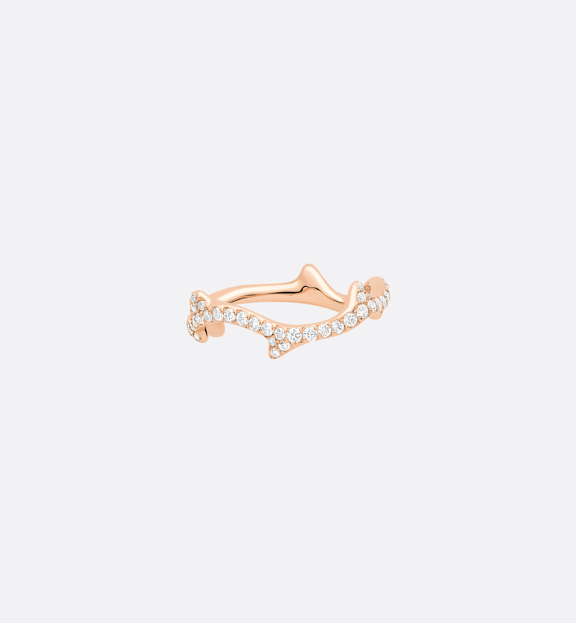 More modern than ever, the Bois de Rose Collection pays homage to Christian Dior's favorite flower, the rose, by reinterpreting its stem in a stunning abstraction. Punctuated with golden or diamond thorns, it wraps delicately around the finger, wrist or ear as a symbol of attachment. - 18K pink gold - Diamonds (0.58 ct*) Size & Fit - Given the ring's irregular design, we recommend ordering a size smaller than your regular size - You may refer to the size guide on the website - For more information on sizing, we invite you to visit to a boutique - To create a unique look, Bois de Rose rings can be paired with each other - The Bois de Rose ring can be complemented by rings from the Rose Dior Couture Collection