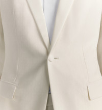 Tailoring is quintessential Dior atelier savoir-faire and lies at the heart of House heritage. Celebrating this unique expertise, the suit revisits elegant tuxedo signatures. Crafted in white virgin wool and silk jacquard that is silky to the touch, the tuxedo can be worn in any season. The single-breasted jacket is characterized by its satin-covered peak lapels and button. It has a modern and sophisticated cut with elegant draping, while the regular-fit, mid-rise pants are enhanced by satin inserts on the sides. The tuxedo can be completed by a shirt and bow tie for a more elegant look on any special occasion. - Jacket: - Single-breasted with satin-covered button - Satin peak lapels - Rear vent - Chest pocket and side flap pockets - Four interior pockets, including a large pocket with a Dior-engraved button - Lining - Pants: - Creases - Side slit pockets - Rear piped pockets with concealed button - Concealed zip and hook closure and button - Satin inserts on the sides - 92% virgin wool, 8% silk and lining: 100% cupro - Made in Italy Size & Fit - Classic drop 10-fit jacket - Back length: 75 cm / 29.5 inches (size 48R) - Regular-fit pants - Leg opening: 19 cm / 7.5 inches (size 48R) - The model measures 189 cm / 74.5 inches and the item shown is in size 48R (FR) - Using our personalized tool will provide you with the best size recommendation - For more information, please review the size guide
