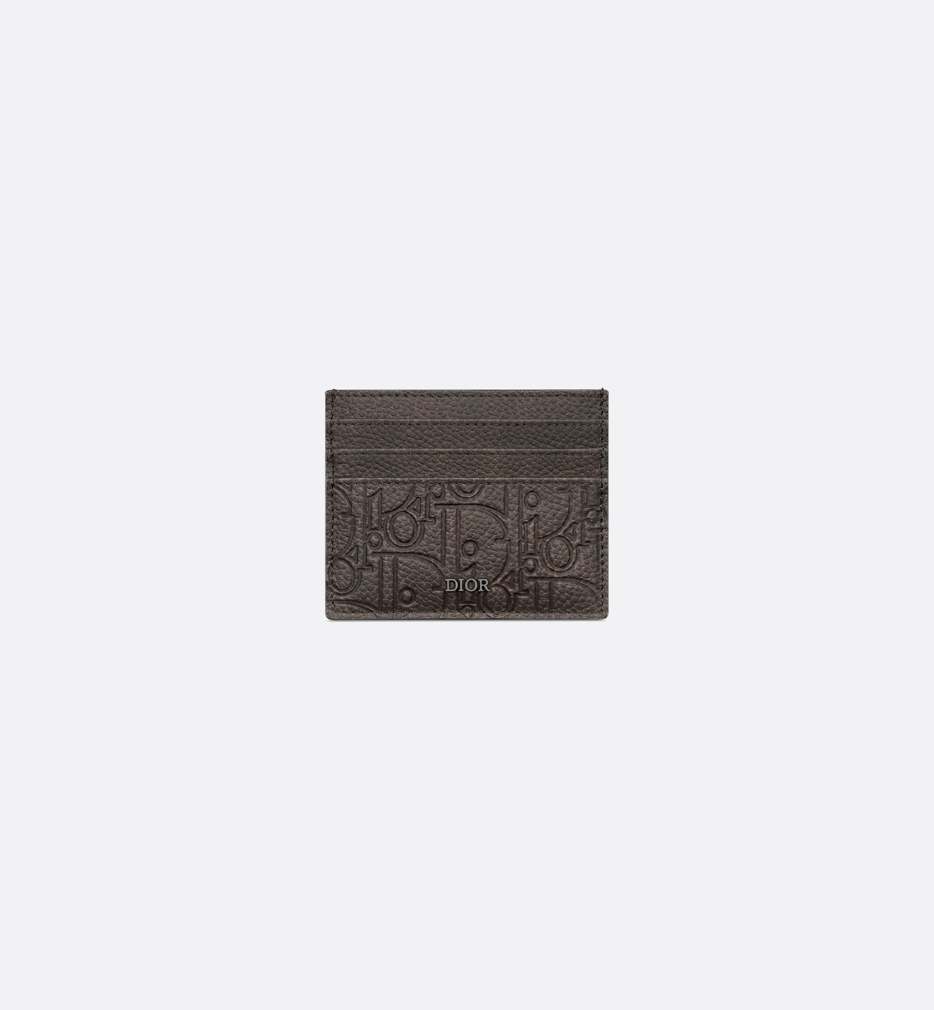 The card holder is a practical piece with refined charm. An expression of the Dior ateliers' virtuosity, it is crafted in Dior Gravity Vintage leather, showcasing the iconic motif delicately embossed on brown calfskin with a unique aged effect. Enhanced by the Dior signature on the front, it features three card slots on either side as well as a central top slot for personal effects. The elegant card holder will slip easily into any pocket. - Main composition: calfskin - Technical fabric and calfskin lining - Three front card slots - Three rear card slots - Central card slot - Ruthenium-finish brass Dior signature on the front - Embossed Dior signature on the interior - Dust bag included - Made in Italy or Spain Size & Fit - Dimensions: 10 x 8 x 2 cm / 4 x 3 x 1 inches (Length x Height x Width) - The size is suitable for credit cards - Size and weight details may vary depending on the product's material