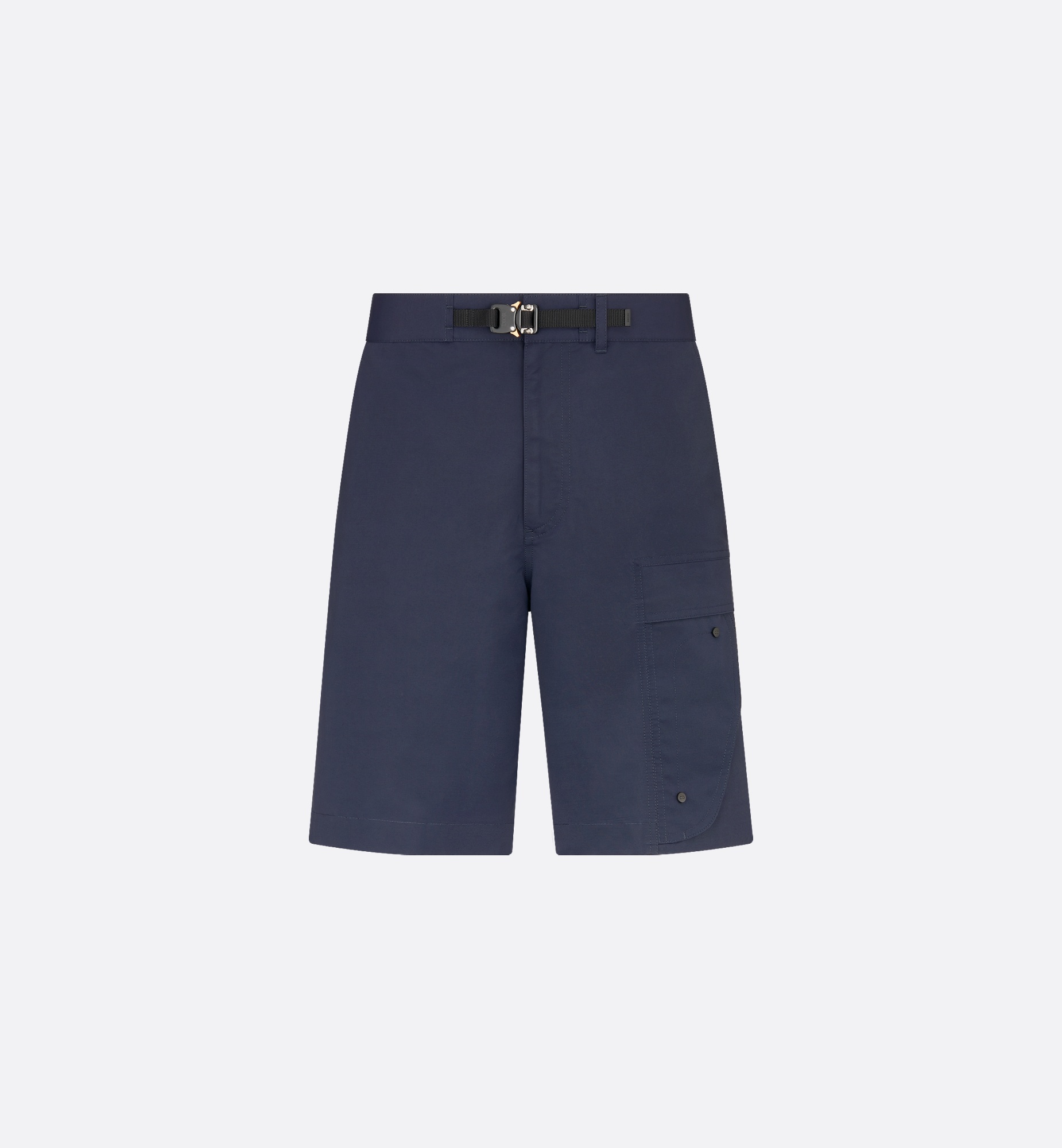 The cargo shorts have a contemporary aesthetic. Made in navy blue cotton-blend ottoman, they are adorned with a Saddle flap pocket on the thigh and a belt with a Christian Dior buckle. A Dior rubber patch lends a hallmark touch to the piece. Featuring a satin finish, the modern cargo shorts can accompany a short-sleeved T-shirt to complete a laid-back look. - Dior rubber patch - Belt with Christian Dior buckle - Zipper and hook-and-bar fastening - Saddle pocket - Side slit pockets and rear piped pockets - 57% cotton, 43% polyamide - Made in Italy Size & Fit - Comfortable fit - Mid-rise waist - Side length: 33 cm / 13 inches (size 48) - Using our personalized tool will provide you with the best size recommendation - For more information, please review the size guide